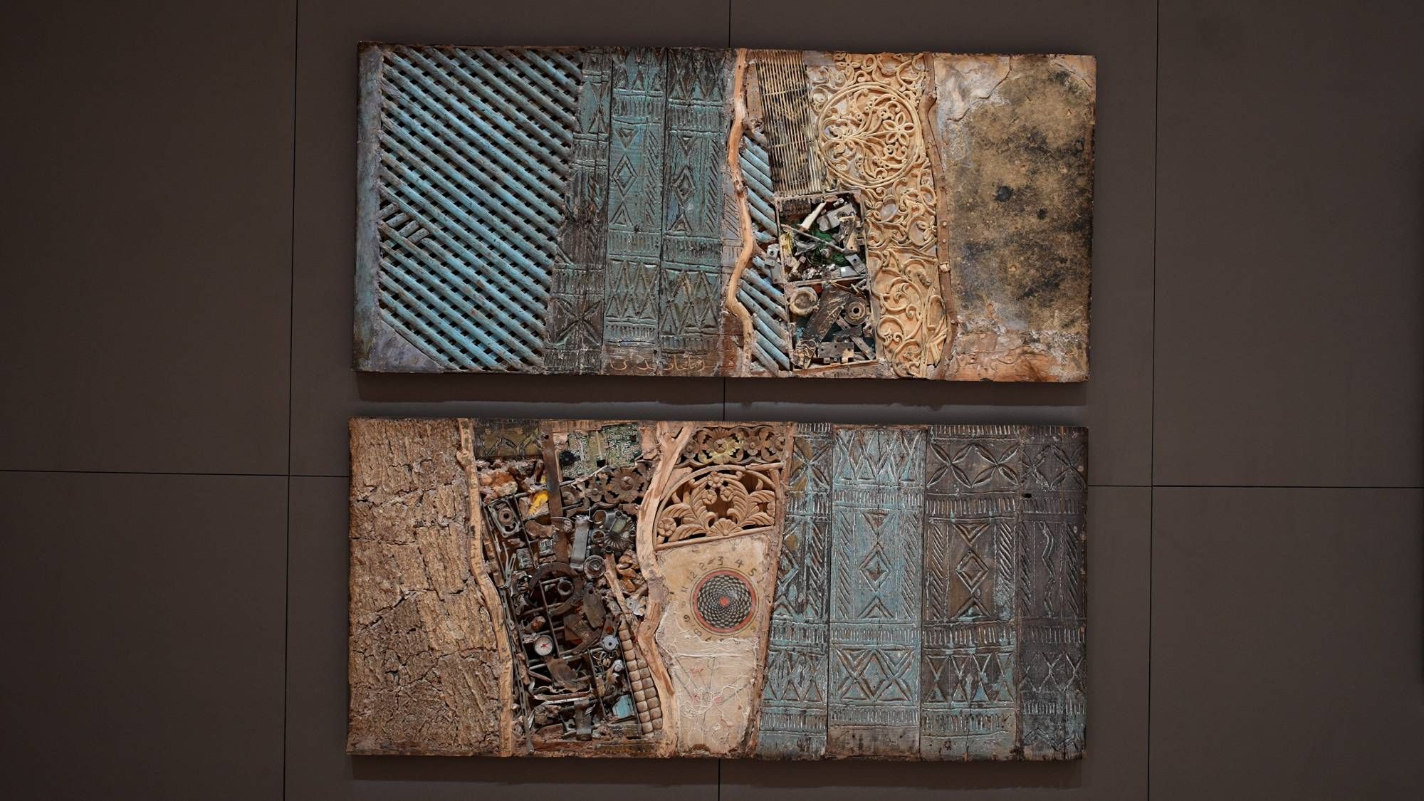 بشكل آخر ترتبط هذه اللوحة بلوحات الفنان السعودي محمد الغامدي، الذي ينسج من قطع مركبة جداريات من نوع خاص تبدو من بعيد وكأنها خريطة لمنطقة أثرية، نرى هنا قطعاً من الخشب المزخرف، ربما كانت أجزاء من باب منزل قديم، يمكننا اعتبارها نوعاً من استرجاع البيوت والأحياء القديمة، يضعها الفنان داخل إطار اللوحة، مع قطع أخرى لا تشبهها، مثل بوصلة قديمة وقطع حديدية، تحمل كلها آثاراً لحياة اجتماعية مضت، يدمجها برسومات نفّذها على الخشب. يقول الفنان: «أعمالي ليست محاولات للعودة للوراء متأثرة بالحنين للماضي، بل هي اعتراف بقوة الماضي في تشكيل المستقبل».