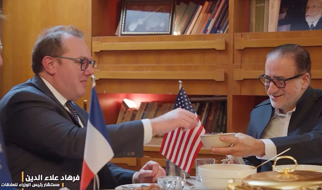 وبموازاة الجدل المتعلق باستخدام الصور المولدة للجواهري والسعيد، تفجر جدل آخر على خلفية ظهور القائم بأعمال السفارة الأميركية جوشوا هاريس، والسفير البريطاني عرفان صديق، والسفير الفرنسي باتريك دويل، والسفير الألماني دانيال كير، خلال مأدبة طعام، وبدا أنهم كانوا بضيافة فرهاد علاء الدين، مستشار رئيس الحكومة العراقية للشؤون الخارجية.