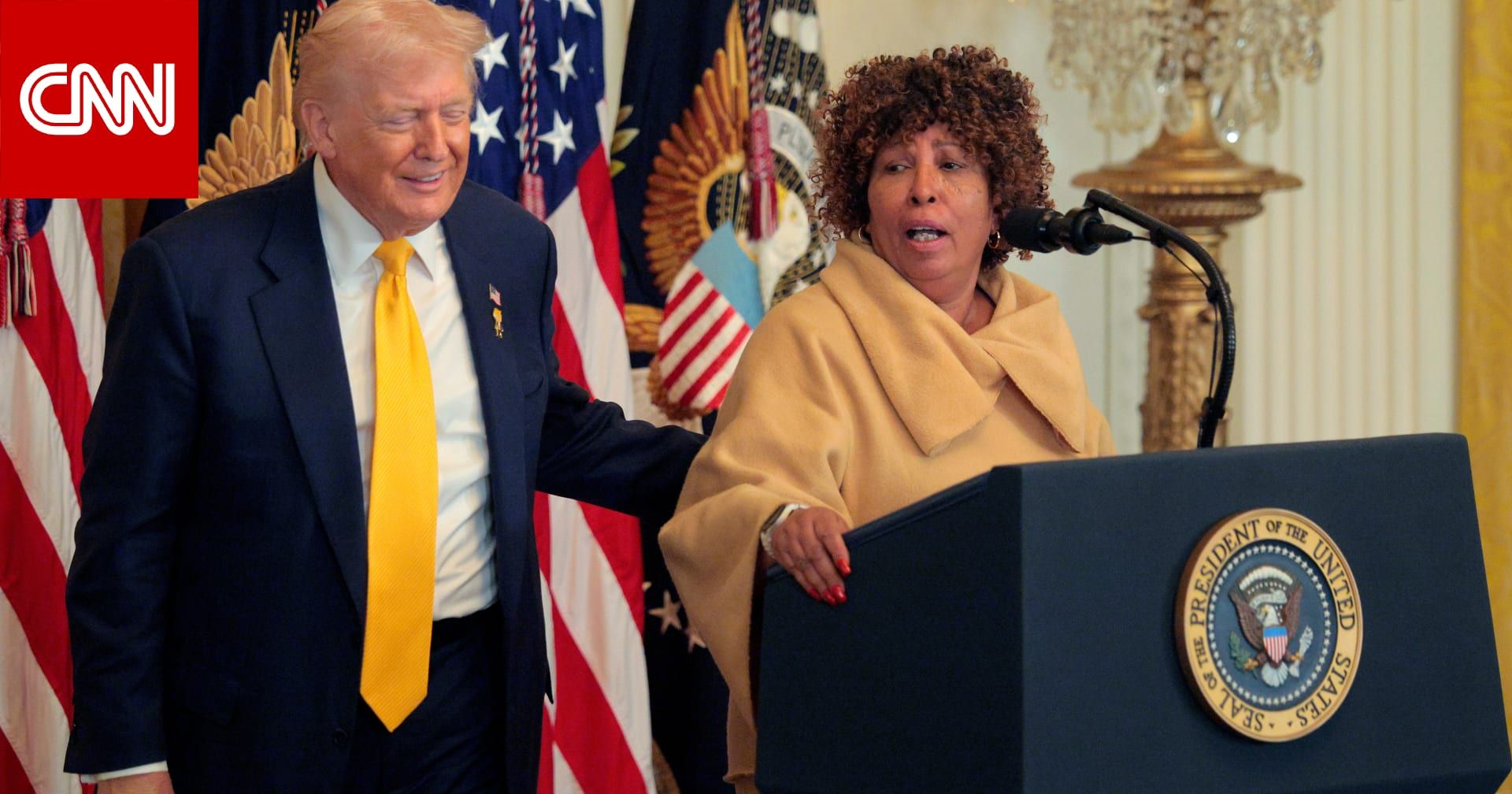 اخبارالعرب 24-كندا:الخميس 19 فبراير 2026 12:25 صباحاً دبي، الإمارات العربية المتحدة (CNN)—برز مقطع فيديو للرئيس الأمريكي، دونالد ترامب، مع امرأة أدلت بكلمة مادحة إياه على الميكروفون وهو يقف بجانبها، خلال مراسم بالبيت الأبيض، الأربعاء.