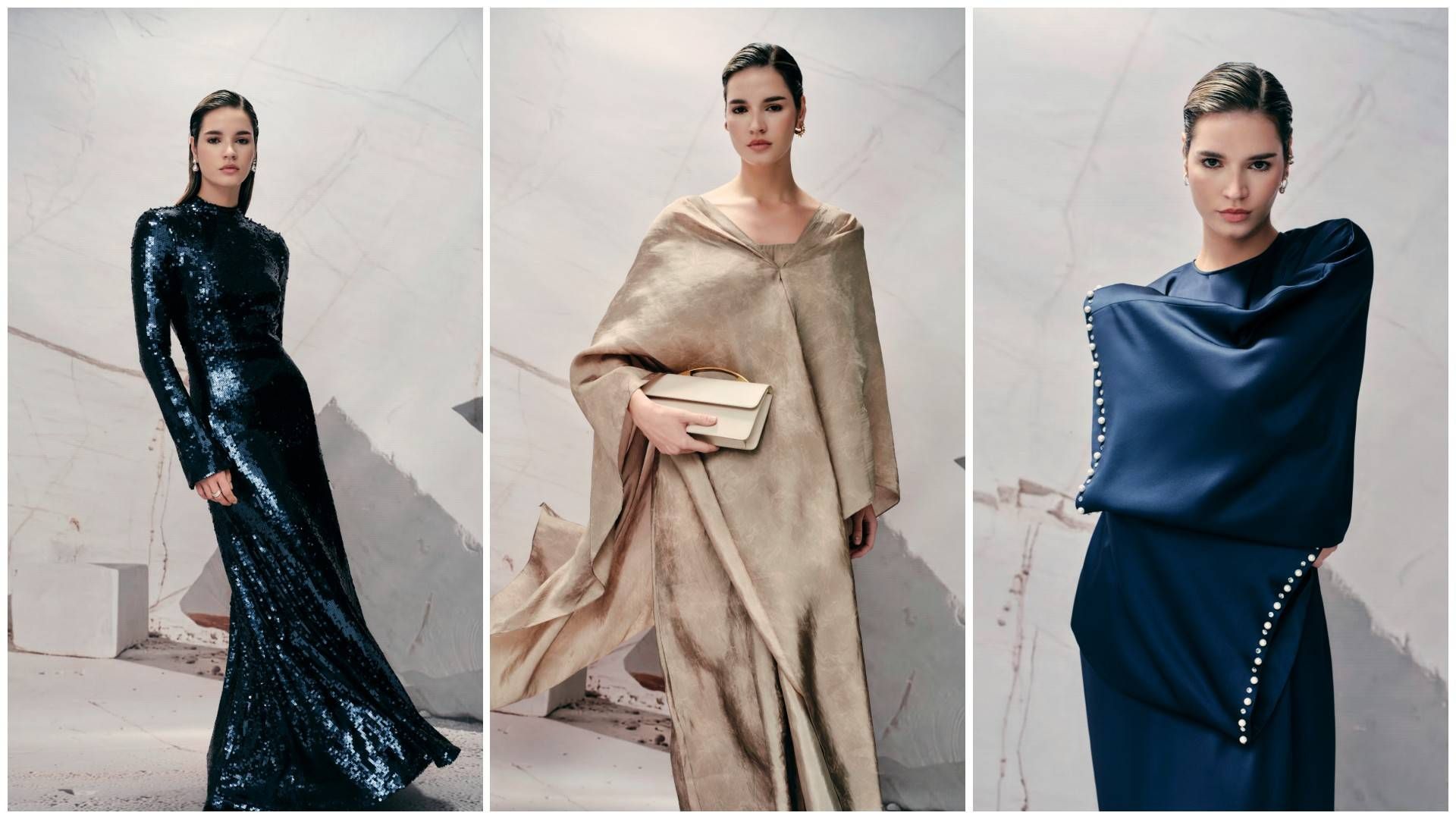 علامة «دي كي إن واي» DKNY ذهبت إلى أبعد من طرح مجرد أزياء محتشمة أو إكسسوارات تتوخى أن تجد لها مكاناً بارزاً في هذا السباق. تعاونت مع المؤثرة دينا السعدي من خلال تشكيلة محدودة الإصدار وحصرية «استُلهمت تفاصيلها من أمسيات رمضان الهادئة ولحظات التلاقي الدافئة» وفق قولها، وهو ما ترجمته في قصّات انسيابية، وألوان هادئة تتباين بين الترابي الهادئ والذهبي الدافئ.