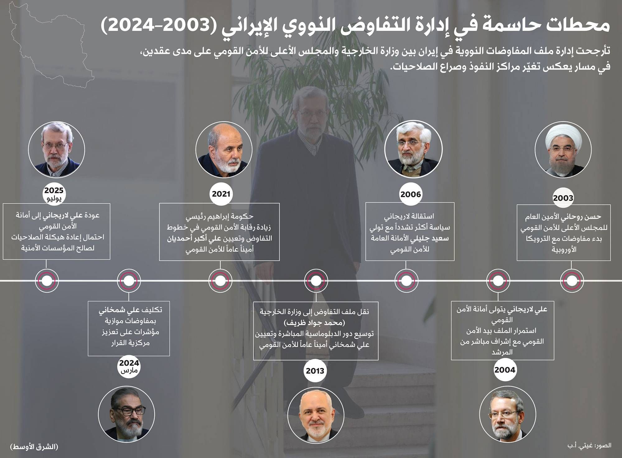 ويُعد لاريجاني (67 عاماً) سياسياً مخضرماً وقائداً سابقاً في «الحرس الثوري»، ويشغل حالياً منصب أمين مجلس الأمن القومي. وتشير المصادر إلى أن صعوده قلص دور الرئيس مسعود بزشكيان، الذي يواجه تحديات داخلية منذ توليه المنصب.