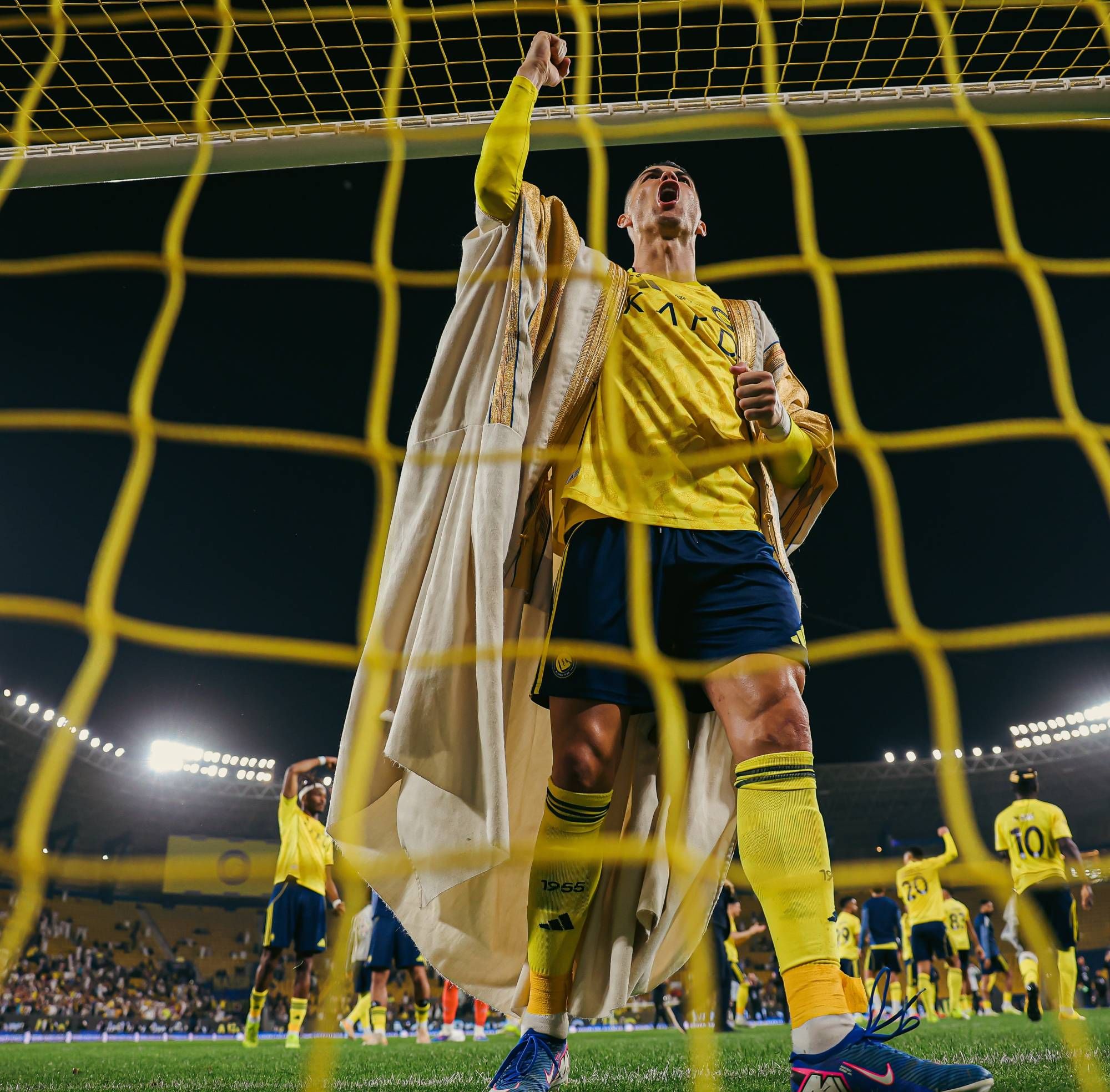 مرتدياً «البشت» التقليدي السعودي احتفاءً بـ«يوم التأسيس» الذي يصادف 22 فبراير (شباط)، احتفل «الدون» مع زملائه في ملعب الأول بارك بالتفوق على الحزم برباعية بيضاء، سجل ابن الـ41 عاماً منها ثنائية أبقته على بُعد 3 أهداف من متصدر الهدافين، نجم الأهلي الإنجليزي إيفان توني (23 هدفاً).