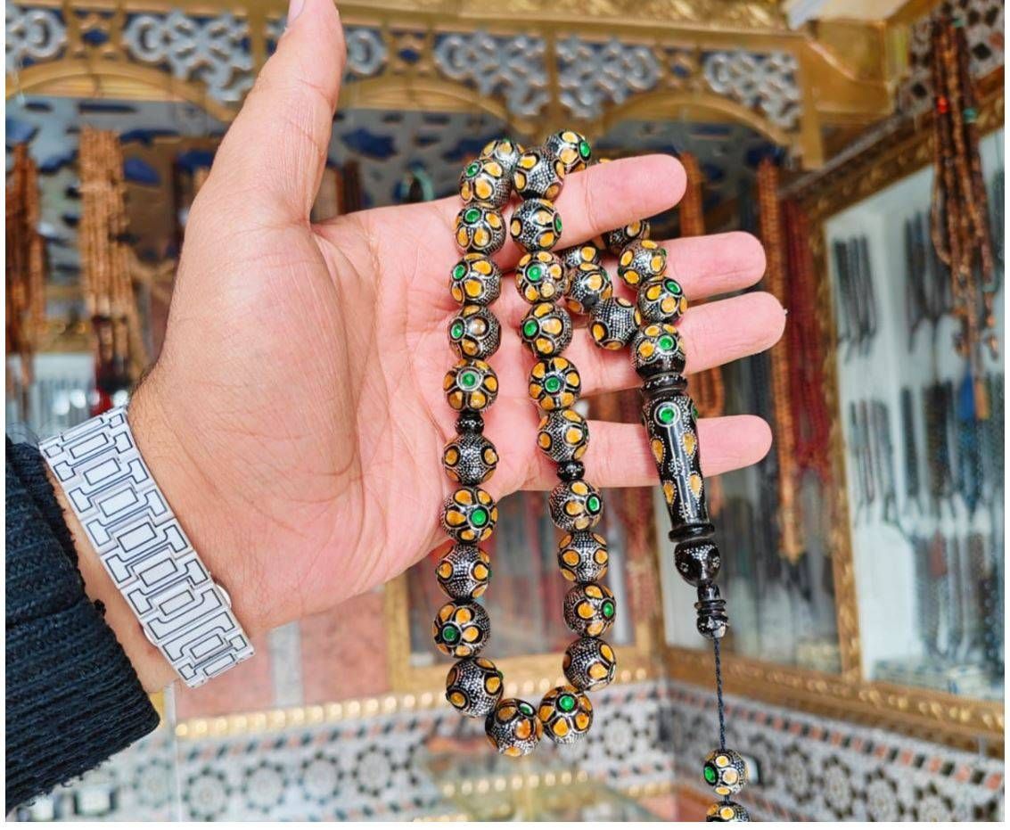 وداخل بازار في شارع المعز «خان الخليلي» بالقاهرة الفاطمية، يقف الشاب محمد سيد فوزي صاحب علامة «مكة للسبح والفضيات»، ممسكاً بسبحته الأنيقة، معرباً في بداية حديثه عن اعتزازه بتصميم وتصنيع السبح بوصفها حرفة أصيلة ورثها من أجداده، وعمل بها الأب والأعمام لعشرات السنين؛ حيث يعد والده سيد فوزي «شيخ المهنة» في مصر.