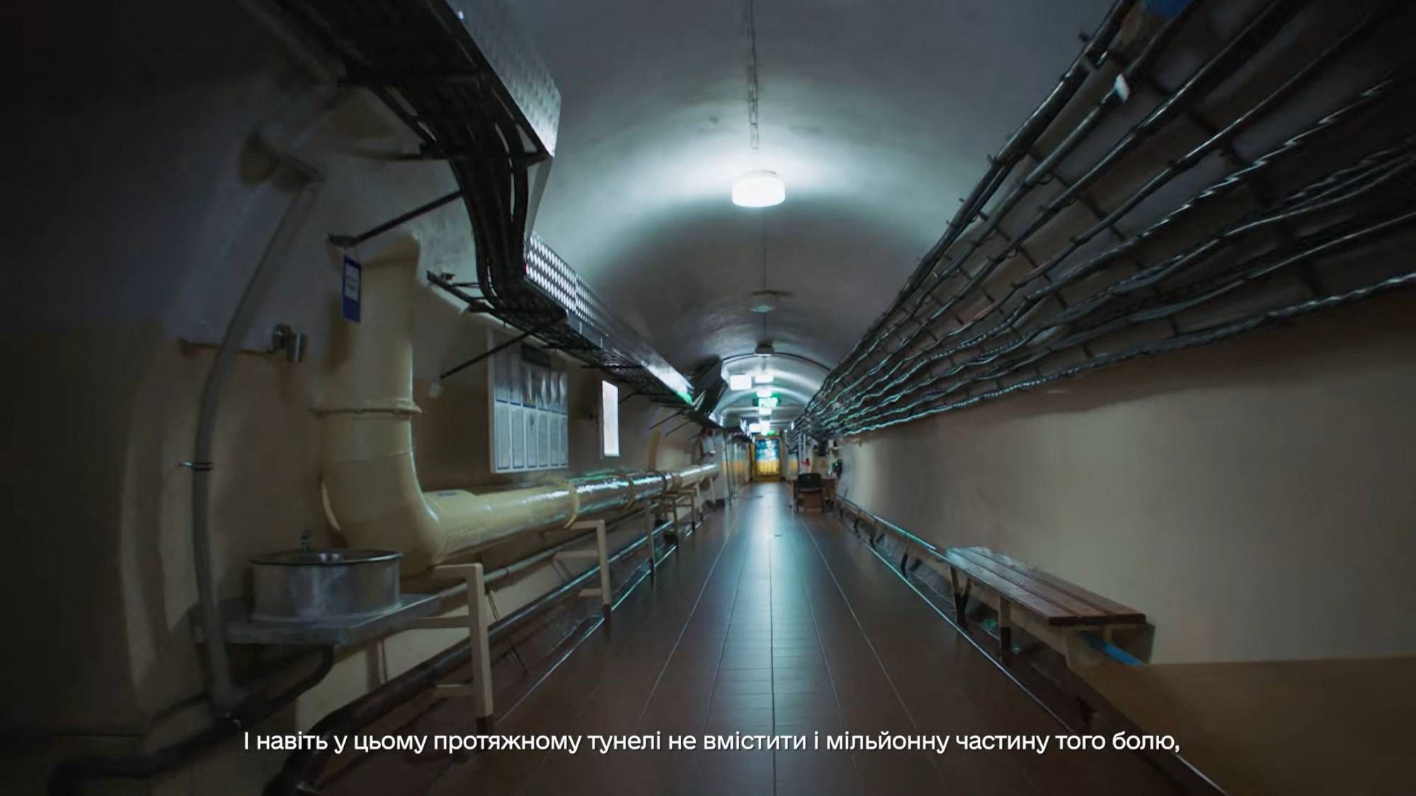 اليوم، توجد في كل غرفة داخل الملجأ نحو عشرة مقاعد، وشاشة تلفزيون، وأعلام أوكرانية. وتمتد أسلاك كهربائية على طول الجدران، إلى جانب أنابيب غاز، فيما ثُبتت لوحات كهربائية في السقف.