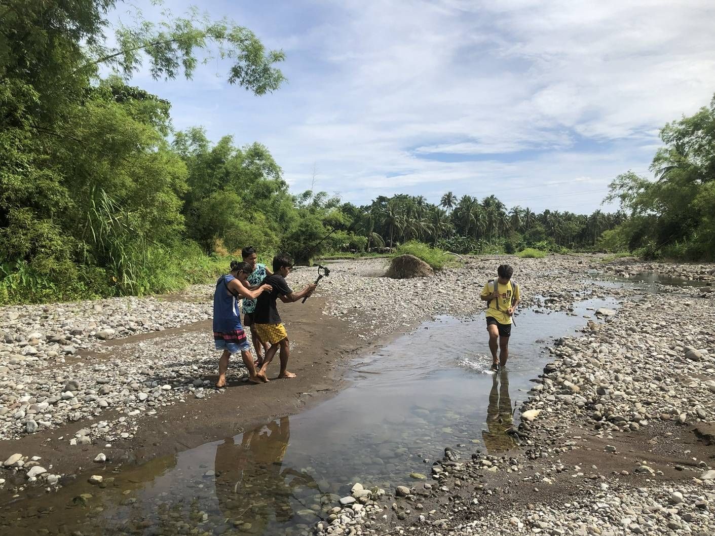 وقال إن «الفريق بدأ بخمسة فقط، يخرجون يومياً ساعتين أو أربع ساعات إلى ضفة النهر، ينتظرون الغروب، يتسلقون سفح الجبل، من دون سيناريو مكتوب، فقط فكرة عامة وإيمان بأن الشرارة ستأتي»، لافتاً إلى أن الشرارة جاءت مصادفة، حين لاحظ بعض أفراد فريقه يضايقون صبياً كان يسبح في النهر. وعندما سأل عن السبب، قيل له إن الطفل هو ابن رجل قتل رجلاً آخر في شجارٍ بين أبَوين مخمورين أثناء الجائحة.