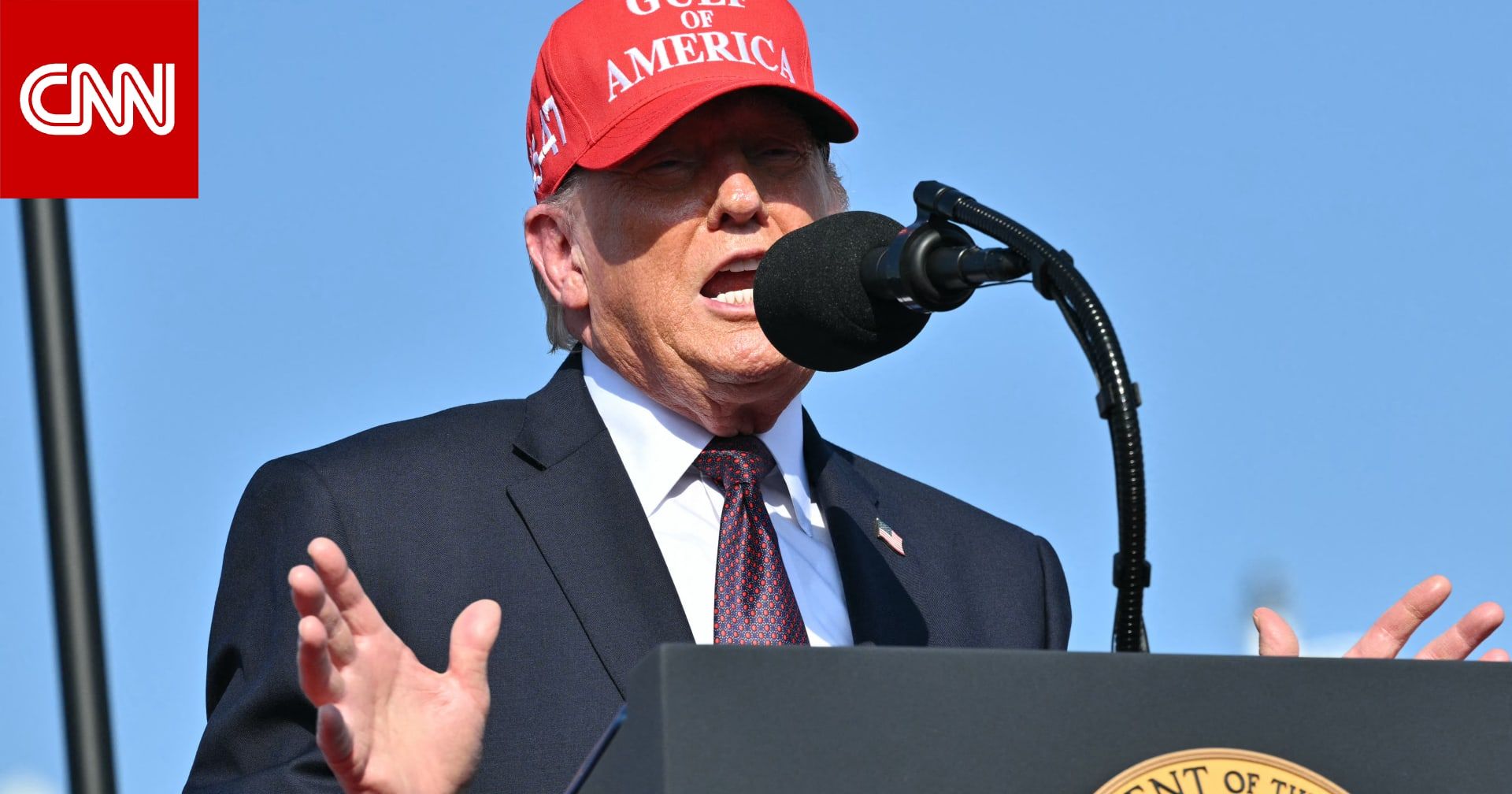 وأدلى ترامب بهذه التصريحات خلال خطاب مطوّل في ميناء كوربوس كريستي بولاية تكساس، مرتديًا قبعة كُتب عليها "خليج أمريكا"، وصعد إلى المنصة على أنغام أغنيته الانتخابية الشهيرة: "حفظ الله أمريكا" للمغني لي غرينوود.