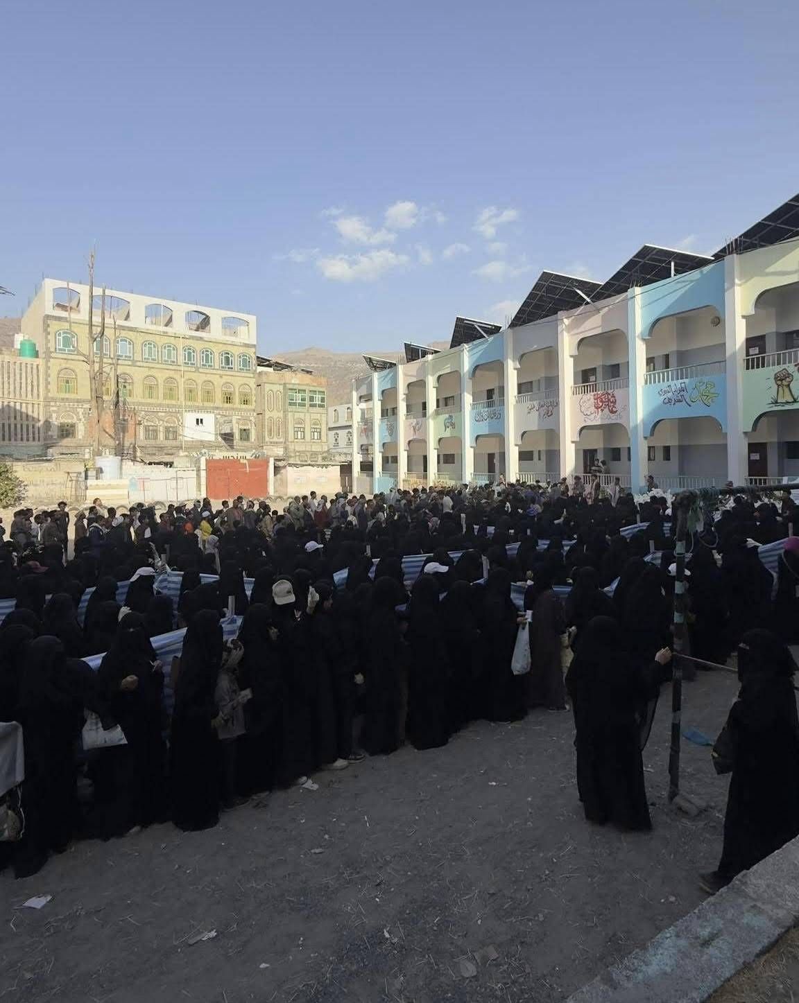 وأظهرت التسجيلات المصورة تجمعات كبيرة داخل مدارس وساحات عامة، حيث اصطفت النساء في طوابير طويلة للحصول على كميات محدودة من الطعام، الأمر الذي عدّه ناشطون مؤشراً واضحاً على التدهور الإنساني المتسارع في مناطق خاضعة لسيطرة الحوثيين، وسط اتهامات للجماعة بمنع توزيع الصدقات والاستحواذ على موارد الزكاة والتحكم بالمساعدات الإنسانية.