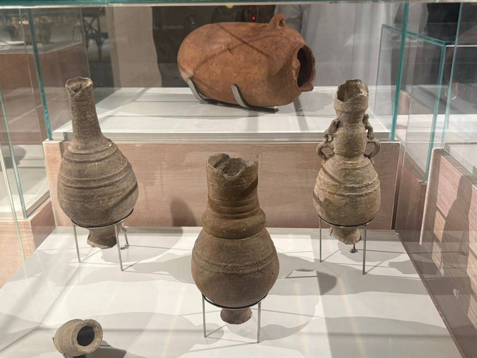 كما يعرض المعرض جراراً اكتُشفت في جزيرة فرسان كانت تستخدم لنقل التوابل والحبوب والعصائر عبر البحر.
