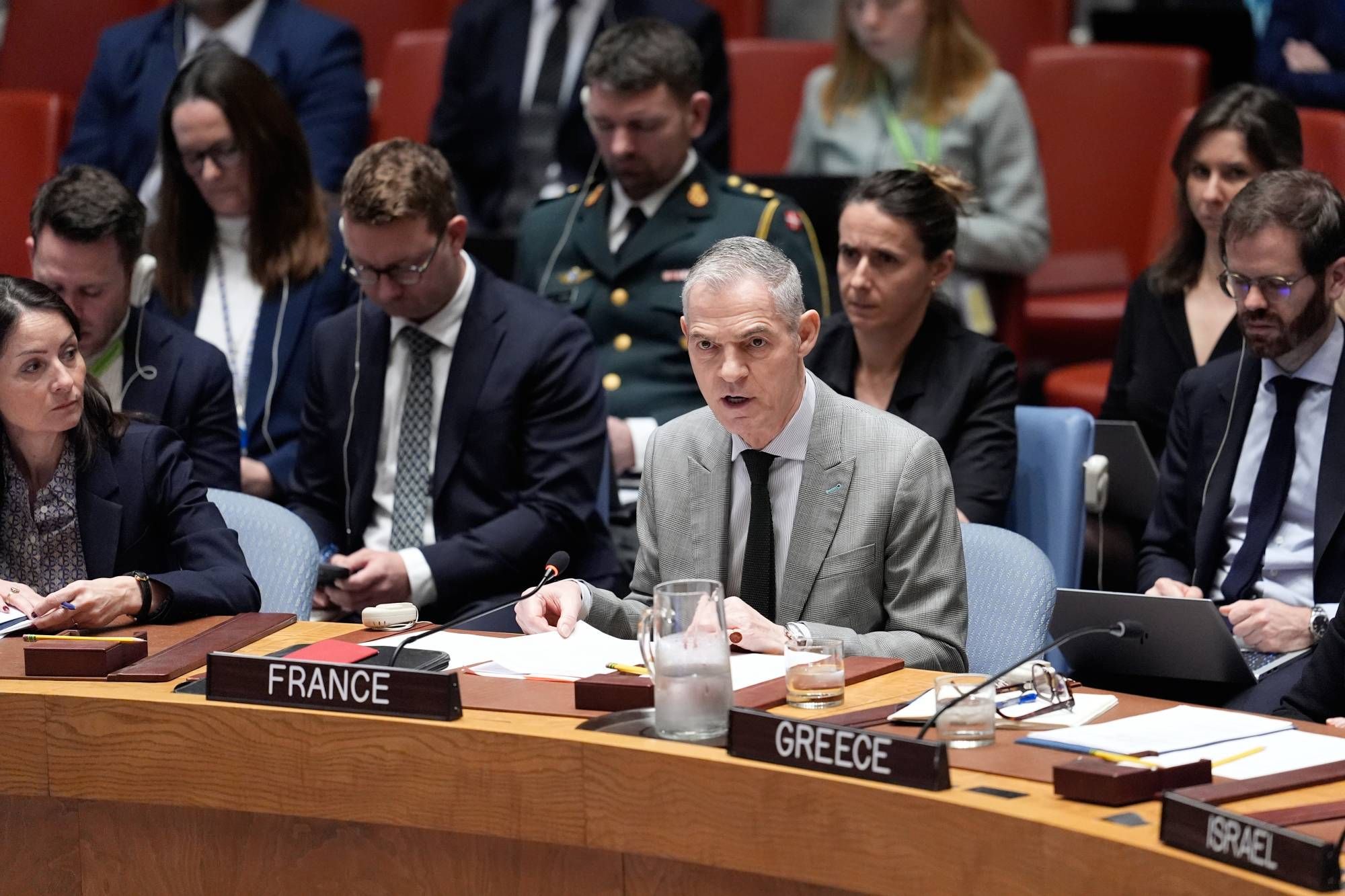 واستطرد المندوب الفرنسي أنه «لا يمكن فصل هذه القضايا عن الأزمة الحالية». ولكن على الرغم من التوترات، أكد أن فرنسا لا تزال ملتزمة بالدبلوماسية لا المواجهة؛ لأن «هدفنا ليس المواجهة، بل الاندماج. نريد لإيران أن تصير عضواً سلمياً وبنّاء في المجتمع الدولي وفي منطقتها». واعتبر أن «إحياء إطار دبلوماسي موثوق هو السبيل الوحيدة لتحقيق حل دائم».