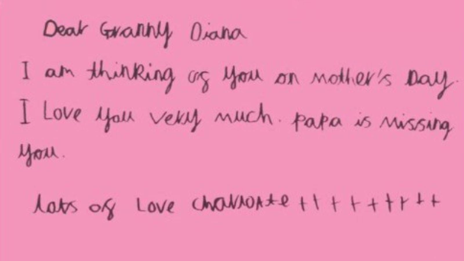 وفي عام 2021 نشر قصر كنسينغتون بعض هذه البطاقات، التي تضمنت رسائل طفولية مؤثرة. فقد كتبت الأميرة شارلوت في إحدى البطاقات: «عزيزتي الجدة ديانا، أفكر فيك في عيد الأم. أحبك كثيراً. بابا يفتقدك».