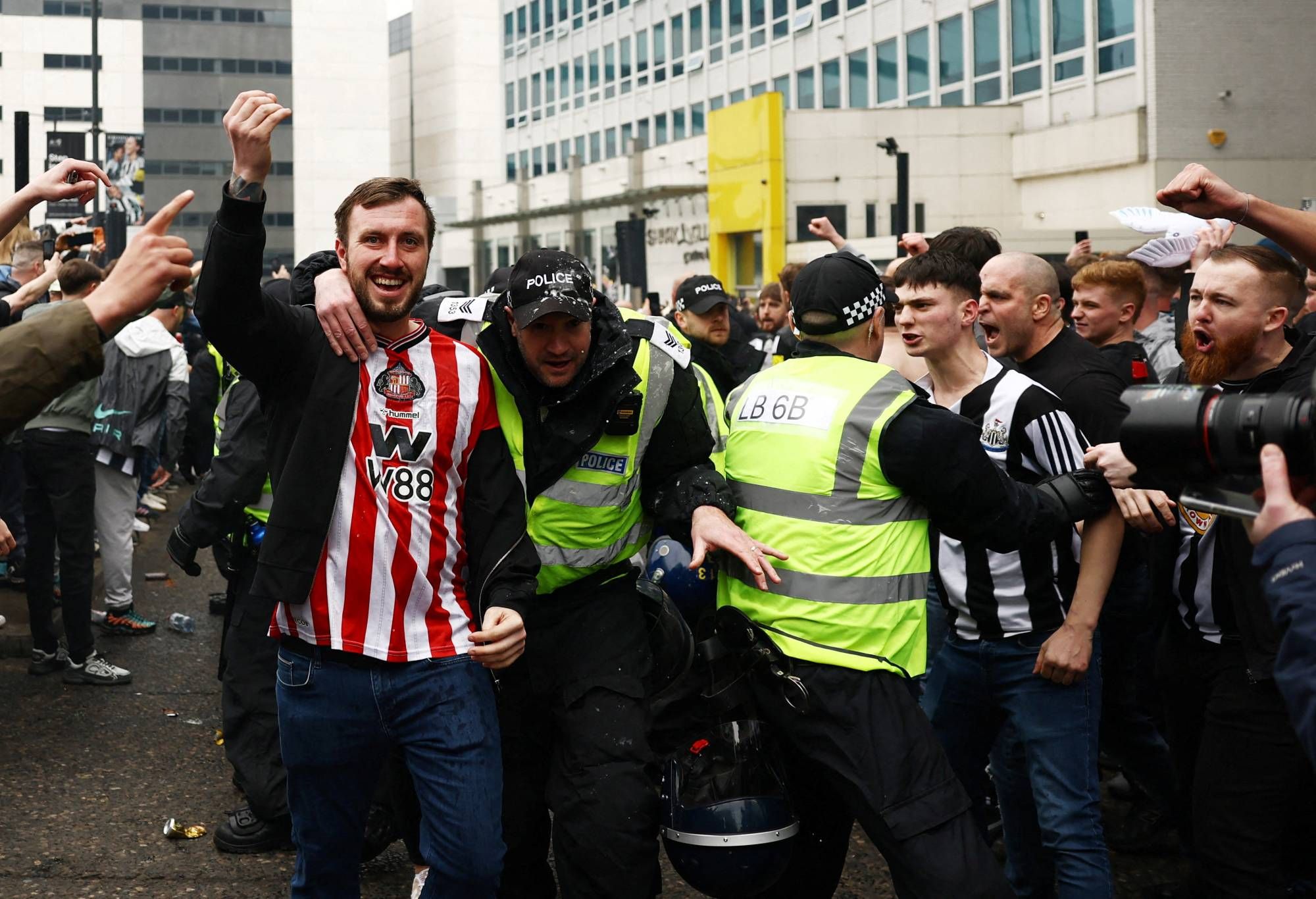 وقبل انطلاق مباراة الديربي المحلي، شهدت المنطقة توتراً بين المشجعين خارج الملعب، حسبما انتشرت مقاطع فيديو على نطاق واسع عبر الإنترنت، لكن شرطة نورثمبريا كشفت أنه لم يتم إلقاء القبض إلا على شخص واحد فقط قبل المباراة.