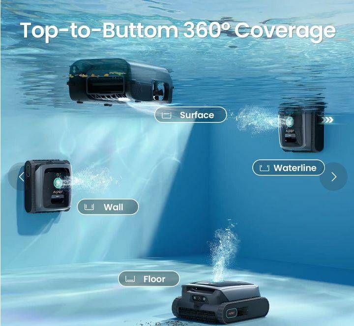 منظف لاسلكي بالذكاء الاصطناعيأما المهام الموكلة لتنظيف ما تحت السطح، فيتولاها المنظف الروبوتي اللاسلكي «آيبر سكوبا في 3 - Aiper Scuba V3»؛ المزود بتقنية «نافيوم للذكاء الاصطناعي المعرفي - Cognitive AI Navium»، والتي تضع عملية تنظيف المسبح تحت السيطرة الكاملة من قِبل الروبوت نفسه.