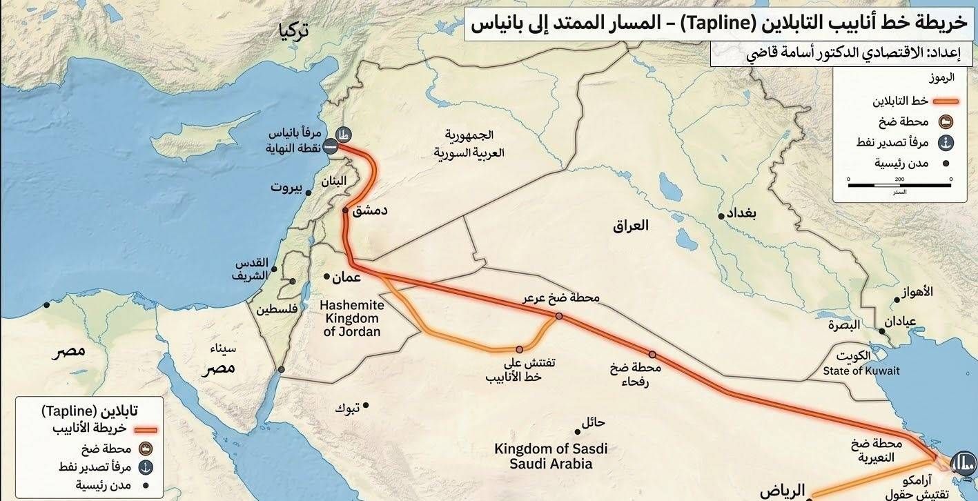 من ضمن مشاريع (4+1)، إعادة إحياء خط أنابيب نقل النفط «التابلاين» الذي نشأ عام 1947 بطول 1664 كيلومتراً، ويمتد من مدينة بقيق السعودية إلى ميناء صيدا اللبناني على البحر الأبيض المتوسط، مع تعديل نهايته ليصب في ميناء بانياس السوري، بحيث يتم ضخ ما بين 5 و7 ملايين برميل يومياً عبر أربعة خطوط متوازية، وذلك بعدما أغلق المشروع بشكل نهائي في تسعينات القرن الماضي.