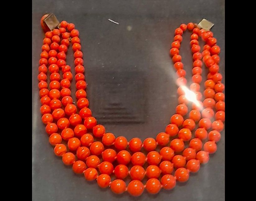 ومن بين القطع المعروضة عقد من أحجار الكوارتز البرتقالي، وأسورة من الفضة تجمع بين الكرات والمكعبات، وأخرى فضية تتدلى منها دلايات، إلى جانب حزام مزخرف بالخرز الملون، وأسورة مطعّمة بالمينا متعددة الألوان (الأزرق والأخضر والأحمر) على هيئة ورود متلاصقة، ودبوس صدر من الفضة المطلي بالذهب مرصّع بفصوص من الكوارتز الأزرق، بالإضافة إلى زوج من الحُلي يُرتدى على الكتفين مصنوع من أحجار زجاجية ملونة، بحسب ما أوضحت مسؤولة قسم المعارض المؤقتة بالمتحف، رشا سعيد.