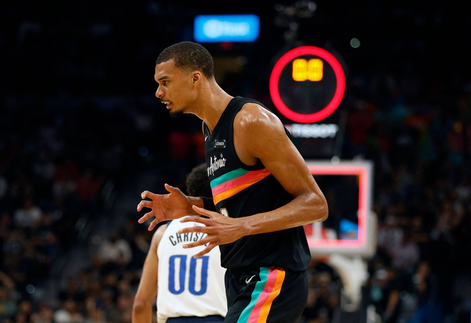 وقاد النجم فيكتور ويمبانياما سان أنتونيو سبيرز، وصيف المنطقة الغربية، إلى فوز كبير على دالاس مافريكس 139-120، بتسجيله 40 نقطة مع 13 متابعة وخمس تمريرات حاسمة وصدّتين.
