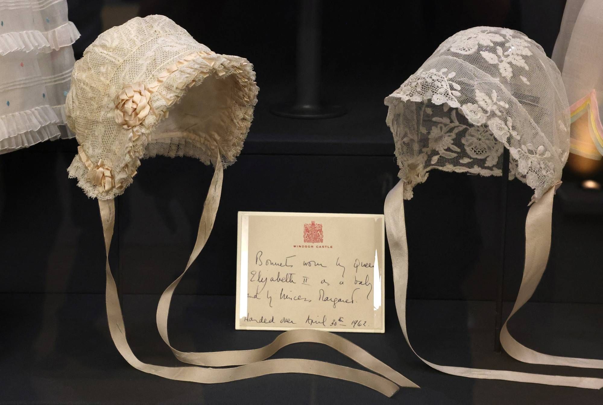 تُعرض أيضاً الملابس التي ارتدتها الملكة خلال أبرز محطات حياتها الطويلة، بدءاً من رداء التعميد الذي كُلّفت الملكة فيكتوريا بصنعه لتعميد الملك إدوارد السابع المستقبلي، وصولاً إلى فساتين زفافها وتتويجها.