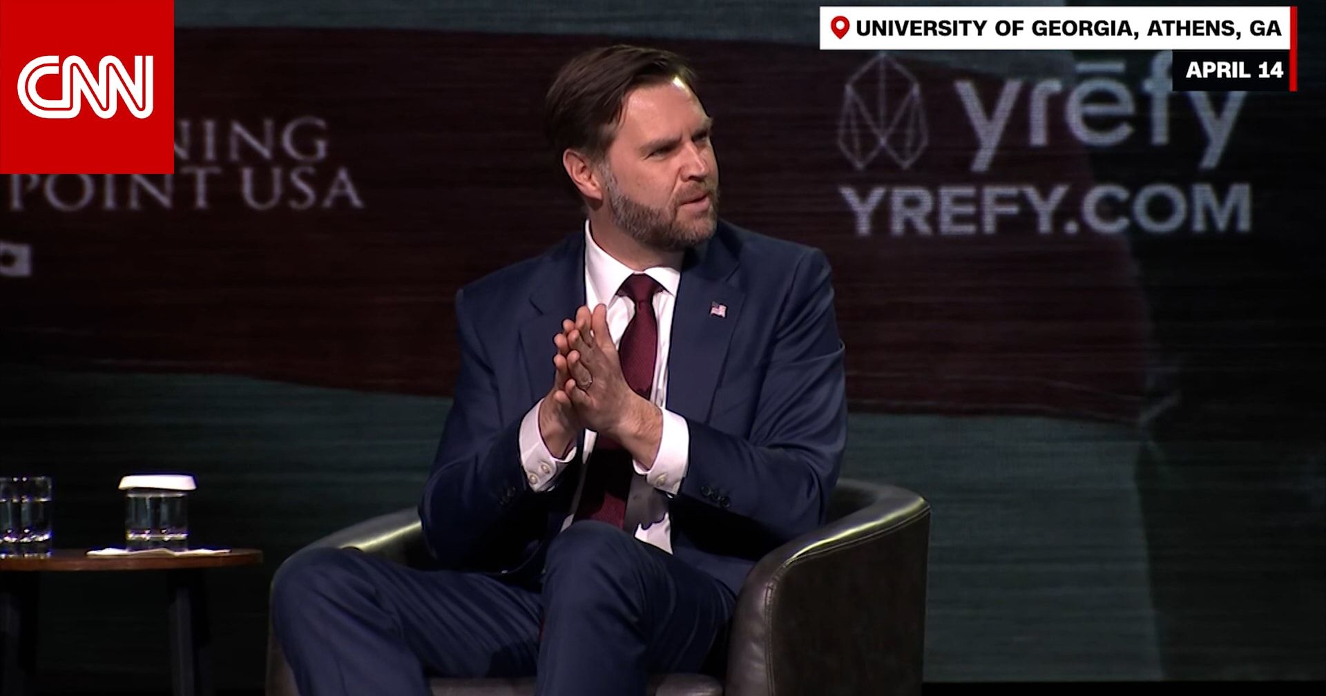 اخبارالعرب 24-كندا:الأربعاء 15 أبريل 2026 07:25 صباحاً تعرض نائب الرئيس الأمريكي، جيه دي فانس، لمقاطعات متكررة أثناء إلقائه خطاباً في فعالية لمنظمة "تيرنينغ بوينت" الأمريكية في ولاية جورجيا. وصرخ أحد الحاضرين، الذي كان جالساً بين الجمهور، قائلاً: "أنت تقتل الأطفال!" بينما كان فانس يتحدث عن أزمة غزة.