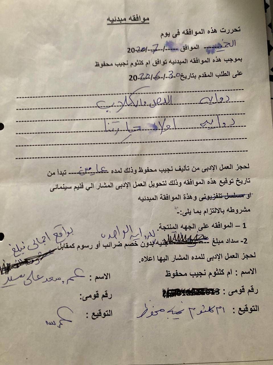 وتستكمل أم كلثوم حديثها قائلة: «اتُّفق على بيع حقوق (أولاد حارتنا) فيما بعد، في حين حصلت مريم نعوم على حقوق (اللص والكلاب)، بعد انتهاء مدة الحجز المبدئي للرواية مع عمرو سعد، الذي لم يتحدَّث حينها عن رغبته في شرائها، وربما اختلط عليه الأمر الآن بين (العقد المبدئي)، و(العقد النهائي) للحقوق».