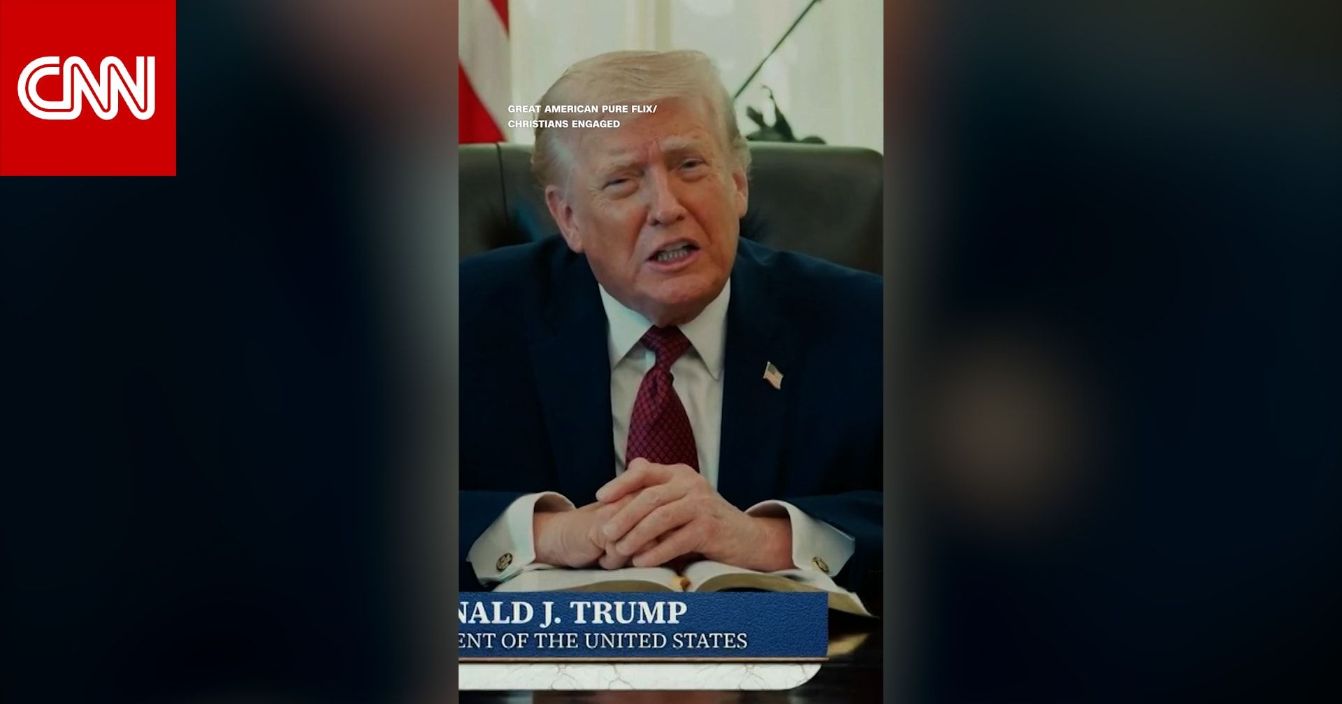 اخبارالعرب 24-كندا:الأربعاء 22 أبريل 2026 03:49 صباحاً مشاركة الرئيس الأمريكي، دونالد ترامب، في فعالية "أمريكا تقرأ الكتاب المقدس"، وهي قراءةٌ للنصوص المقدسة تستمر سبعة أيام بمشاركة العديد من القراء، تُسلّط الضوء على علاقته المعقدة بالمسيحية، وعلى تصريحاته السابقة الغريبة حول الكتاب المقدس. المزيد من التفاصيل في تقرير بيتسي كلاين، مراسلة شبكة CNN.