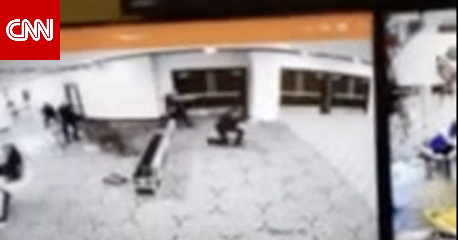 يُظهر الفيديو عناصر الأمن وهم يقفون لحراسة المكان ويستجيبون بسرعة لموقفٍ كان يحدث خارج نطاق الكاميرا.