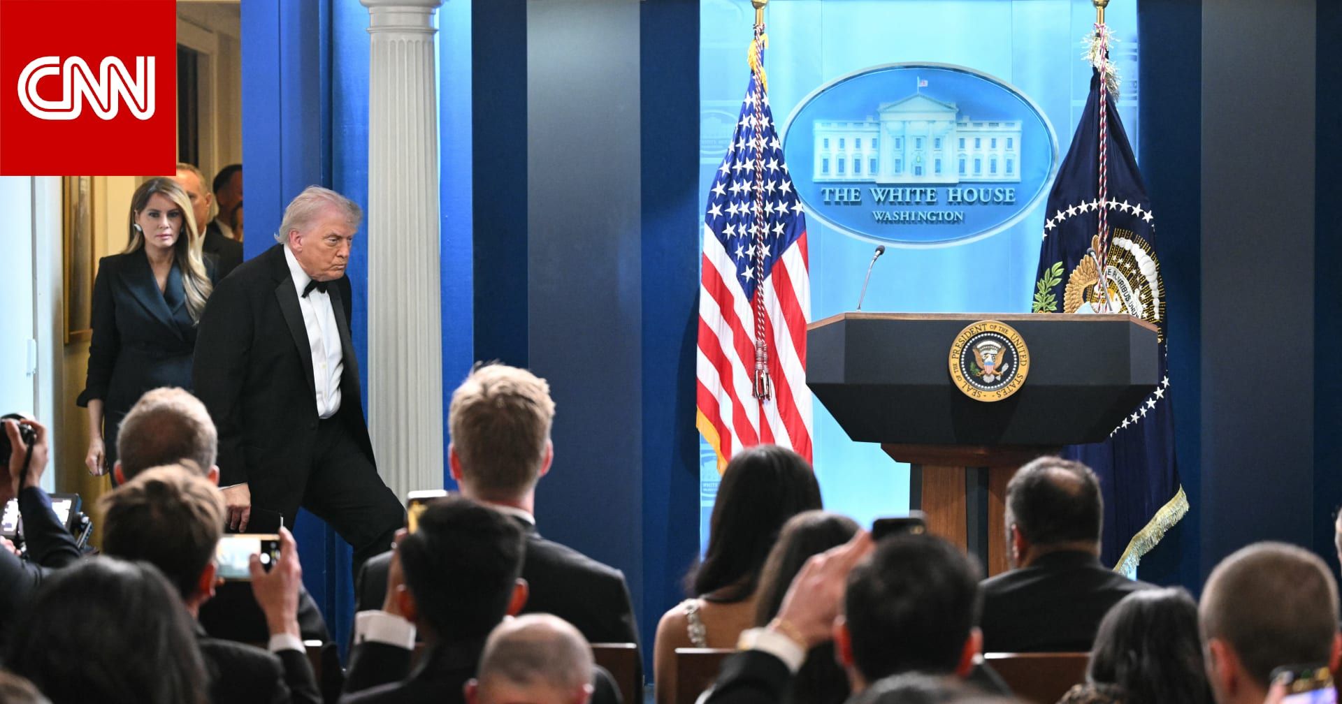 اخبارالعرب 24-كندا:الاثنين 27 أبريل 2026 02:01 صباحاً (CNN)— قال الرئيس الأمريكي دونالد ترامب، الأحد، إن السيدة الأولى ميلانيا ترامب "تعاملت مع الموقف بشكل رائع" عندما تم إطلاق أعيرة نارية خلال حفل عشاء مراسلي البيت الأبيض.