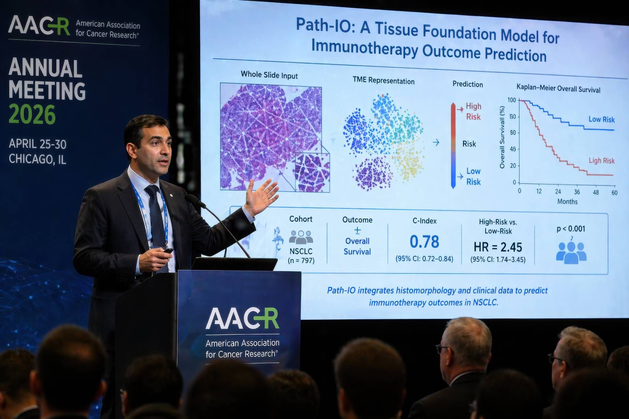 وفي هذا السياق، وخلال إحدى الجلسات العلمية الافتتاحية للمؤتمر، قدّم الباحث فيصل محمود (Faisal Mahmood) من كلية الطب بجامعة هارفارد، عرضاً لافتاً لنموذج متقدم من الذكاء الاصطناعي يعيد تعريف دور هذه الشرائح؛ لا بوصفها أداة للتشخيص فحسب، بل بوصفها مصدراً قادراً على الإسهام المباشر في توجيه القرار العلاجي.