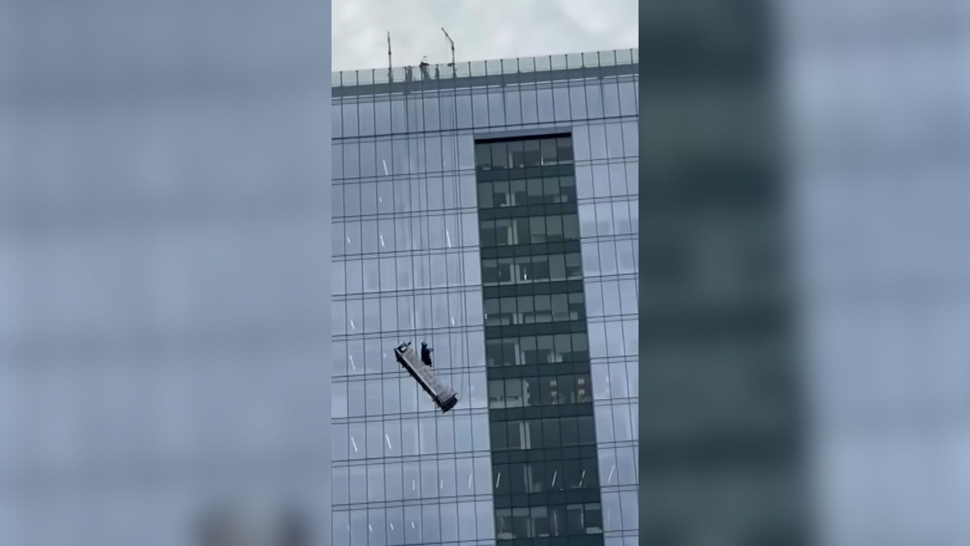 شاهد.. إنقاذ عاملي تنظيف نوافذ علقا على ارتفاع 15 طابقًا