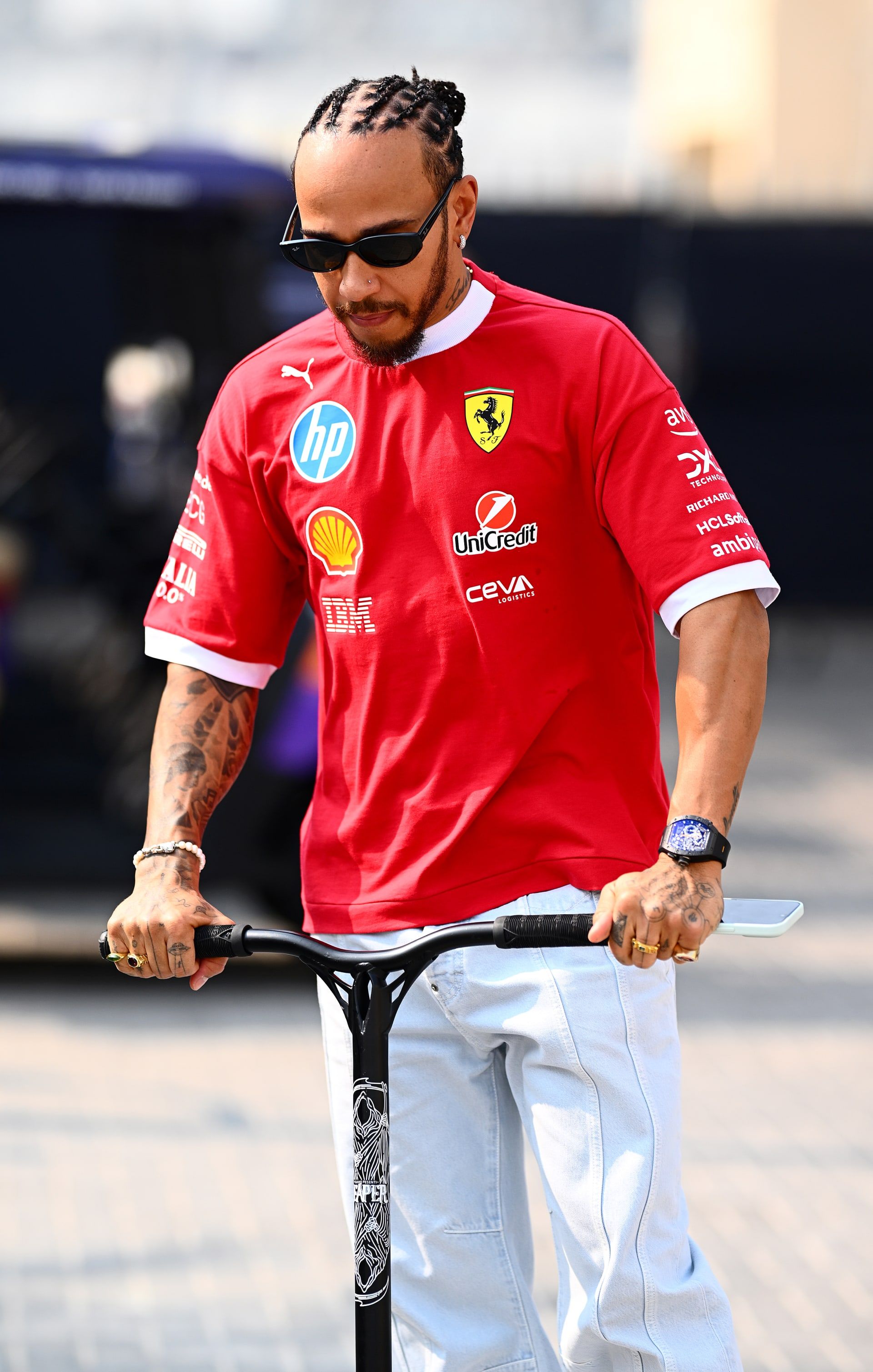 كان هاميلتون قد وصل إلى أبوظبي مرتديًا إطلالة باللون البيج، مؤلفة من جيليه من دون أكمام وسروال واسع. وقد نشرت صفحة "فيراري ستايل" الرسمية على "إنستغرام" فيديو لهذه الإطلالة. ومن ثم عاد وارتدى إطلالة مشابهة من العلامة التجارية ذاتها باللون الأحمر.