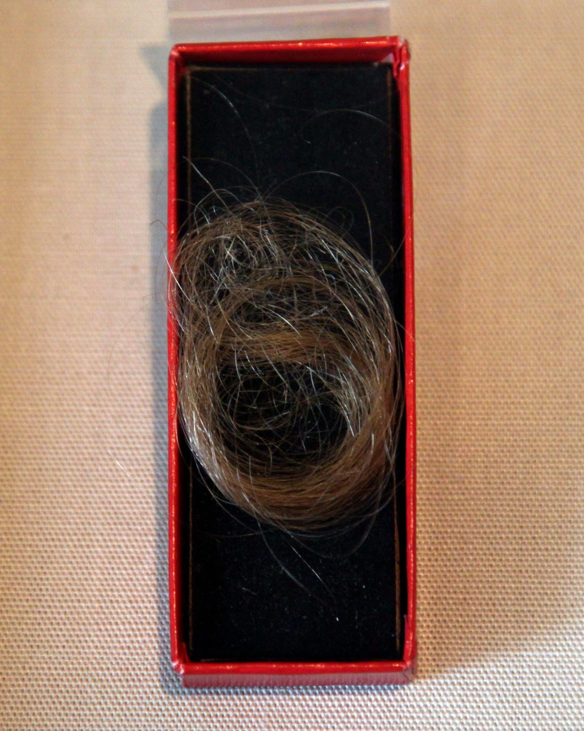 حتى الآن، لم تخضع عينات الشعر سوى لفحص محدود. وقد أُجريت دراسة باستخدام المجهر الإلكتروني العام 1972، بسبب مخاوف جمعية جين أوستن من تدهور الخصل. وظهر دليل على حدوث تبييض نتيجة التعرّض للضوء، حيث بدا بعض الشعر بلون قشّي فاتح، في حين كان الجانب السفلي منه بنيًا.