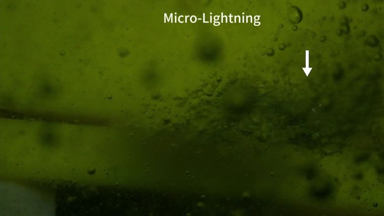 غير أن هذا "البرق المجهري" لا يأتي من السماء، بل ينشأ من فقاعات ماء مشحونة كهربائيًا تتفاعل مع الميثان لتُنتج تلك الومضات الضوئية.