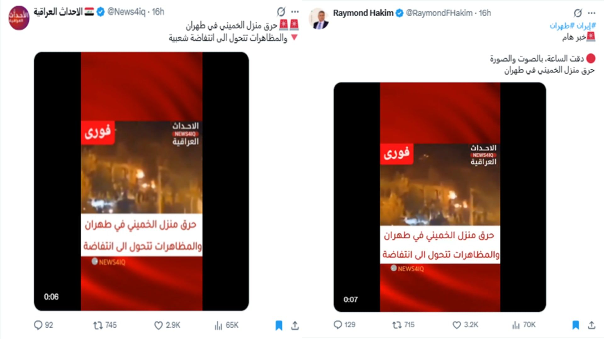 اخبار العرب -كندا 24: الأربعاء 31 ديسمبر 2025 03:39 مساءً دبي، الإمارات العربية المتحدة (CNN)-- انتشر مقطع فيديو على وسائل التواصل الاجتماعي، بزعم أنه للحظة حرق منزل قائد الثورة الإسلامية الإيرانية الراحل روح الله الخميني، تزامنًا مع احتجاجات إيران الأخيرة.