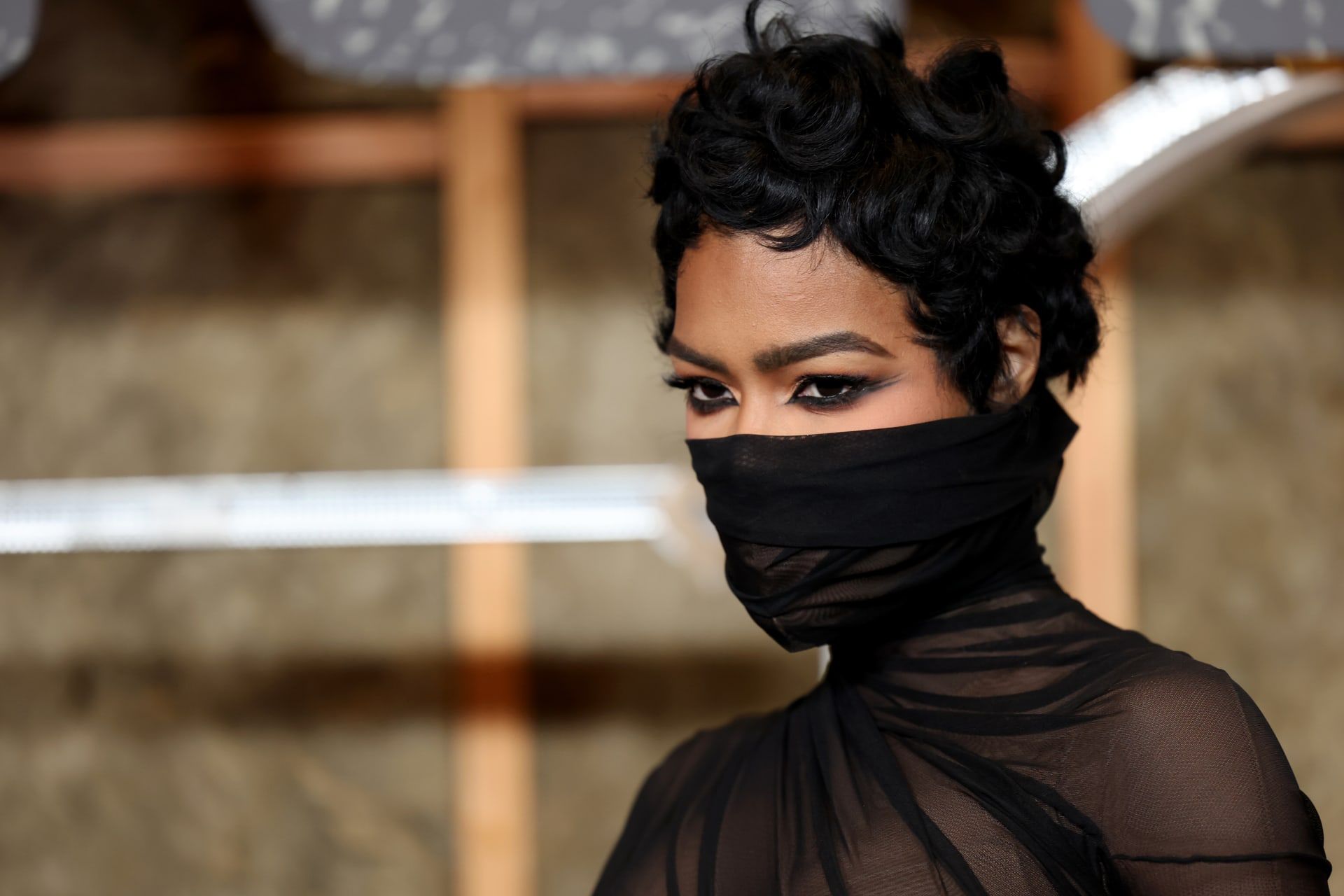 أكملت تايلور الإطلالة السوداء بجوارب شفافة وحذاء كلاسيكي بكعب عالٍ، مع تسريحة شعر بيكسي ومكياج عيون قوي يعتمد على الكحل الأسود داخل العينين وماسكارا كثيفة، في حين بقيت تفاصيل المكياج الأخرى مخفية خلف الوشاح الذي يغطي جزءًا من وجهها.