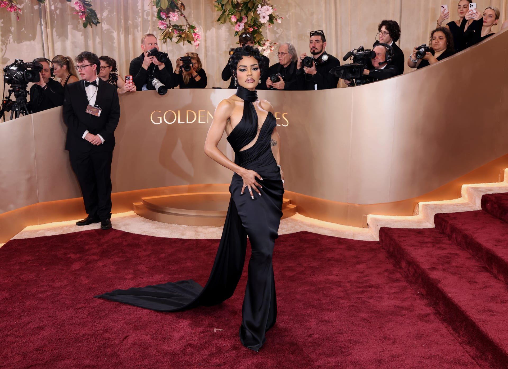 إطلالة جريئة في حفل "غولدن غلوب"وكانت قد تألّقت تايلور على السجادة الحمراء في حفل غولدن غلوب 2026 بإطلالة من دار "سكاباريللي" الإيطالية، صمّمها دانيال روزبيري خصيصًا لها.