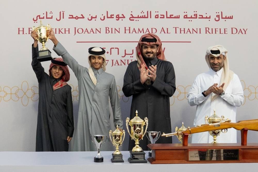 السبت 17 يناير 2026 05:40 مساءً توج سعادة الشيخ جوعان بن حمد آل ثاني، رئيس اللجنة الأولمبية القطرية، بتتويج الفائزين بجائزة وبندقية سعادته، وكذلك أبطال بطولة "السابق" التراثية التي أقيمت ضمن فعاليات السباق، وذلك في ختام هذا الكرنفال المميز امس على جوائز وبندقية سعادة الشيخ جوعان بن حمد آل ثاني على مضمار الريان العشبي بنادي قطر للسباق والفروسية