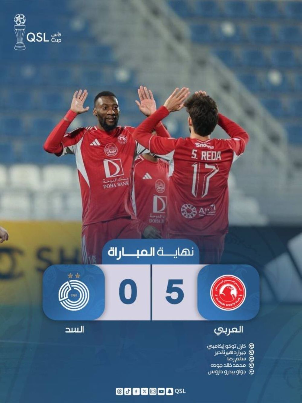 الدوحة- د. ب. أ- حقق فريق العربي فوزا عريضا على السد بنتيجة 5 / صفر ضمن منافسات الجولة العاشرة من بطولة كأس نجوم قطر.