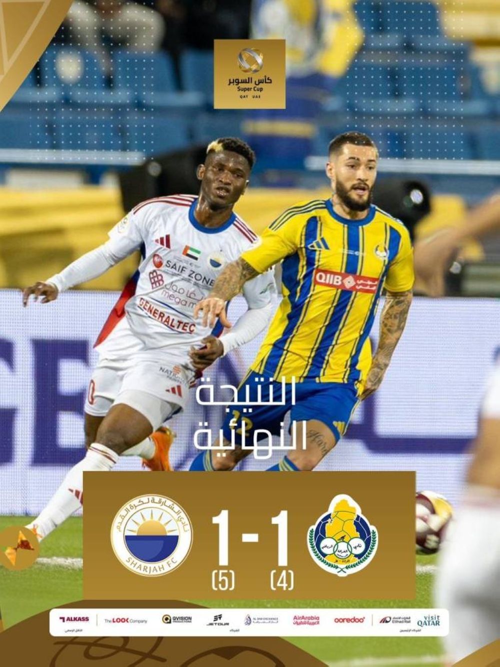الخميس 22 يناير 2026 05:28 مساءً خسر الغرافة مواجهة الشارقة الإماراتي ليضيع كأس السوبر القطري- الإماراتي في نسخته الجديدة، بعد انتهاء المباراة بالتعادل الإيجابي ليخسر الفهود بركلات الترجيح بنتيجة 5-4.
