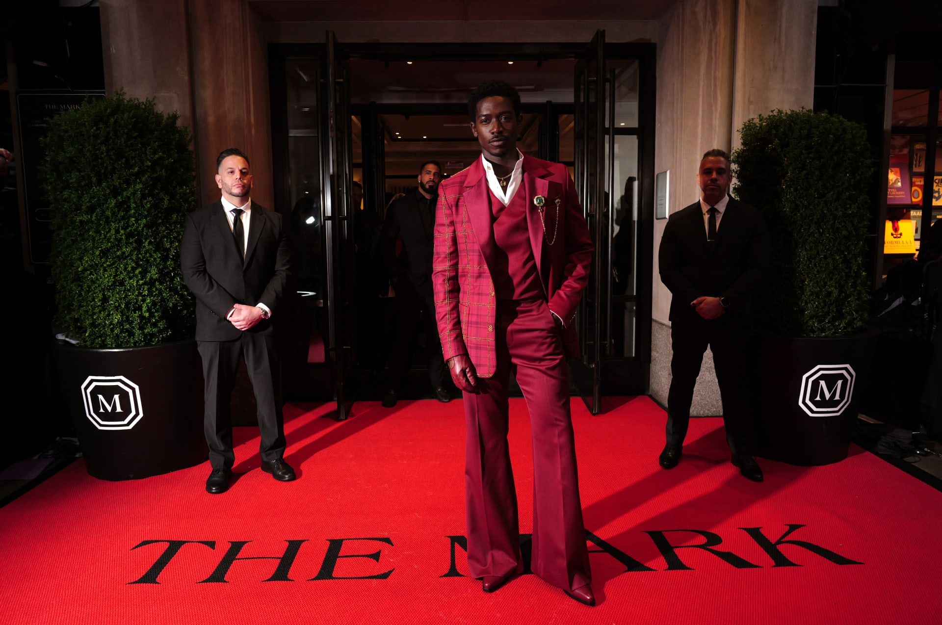 رافق هذا التصميم الممثّل البريطاني دامسون إدريس إلى حفل ميت غالا 2025، حيث ارتدى بدلة توكسيدو بنقشة "التارتان" من العلامة الأمريكية "تومي هيلفيغر"، جمعت بين النمط الكلاسيكي ودراما الأزياء على السجادة الحمراء.