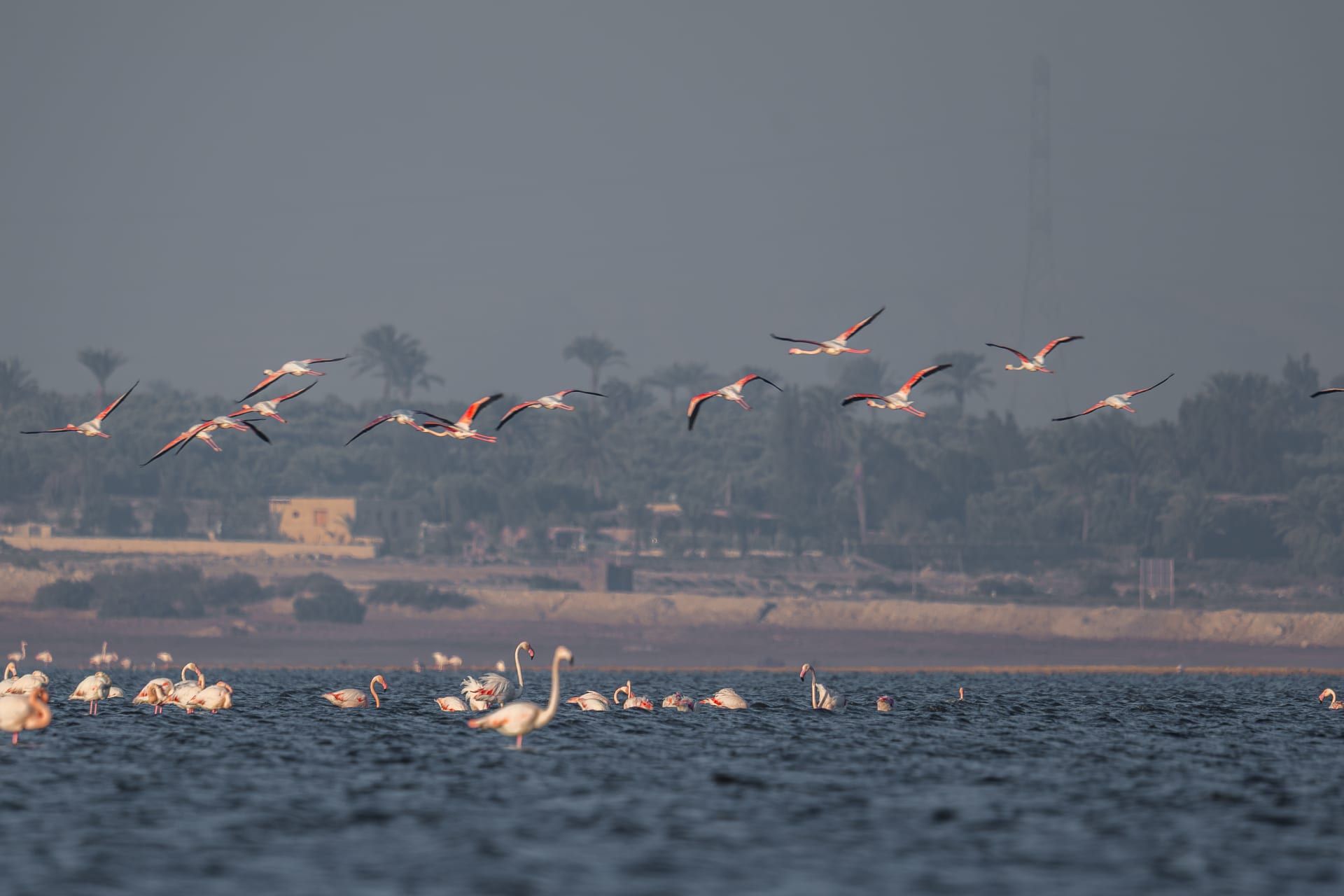 في مصر، وتحديدا ببحيرة قارون بمحافظة الفيوم، وثقت عدسة المصور المصري، أحمد عماد، مشاهد خلابة لطيور الفلامنجو، التي تُعرف باسم طيور النحام الوردي.