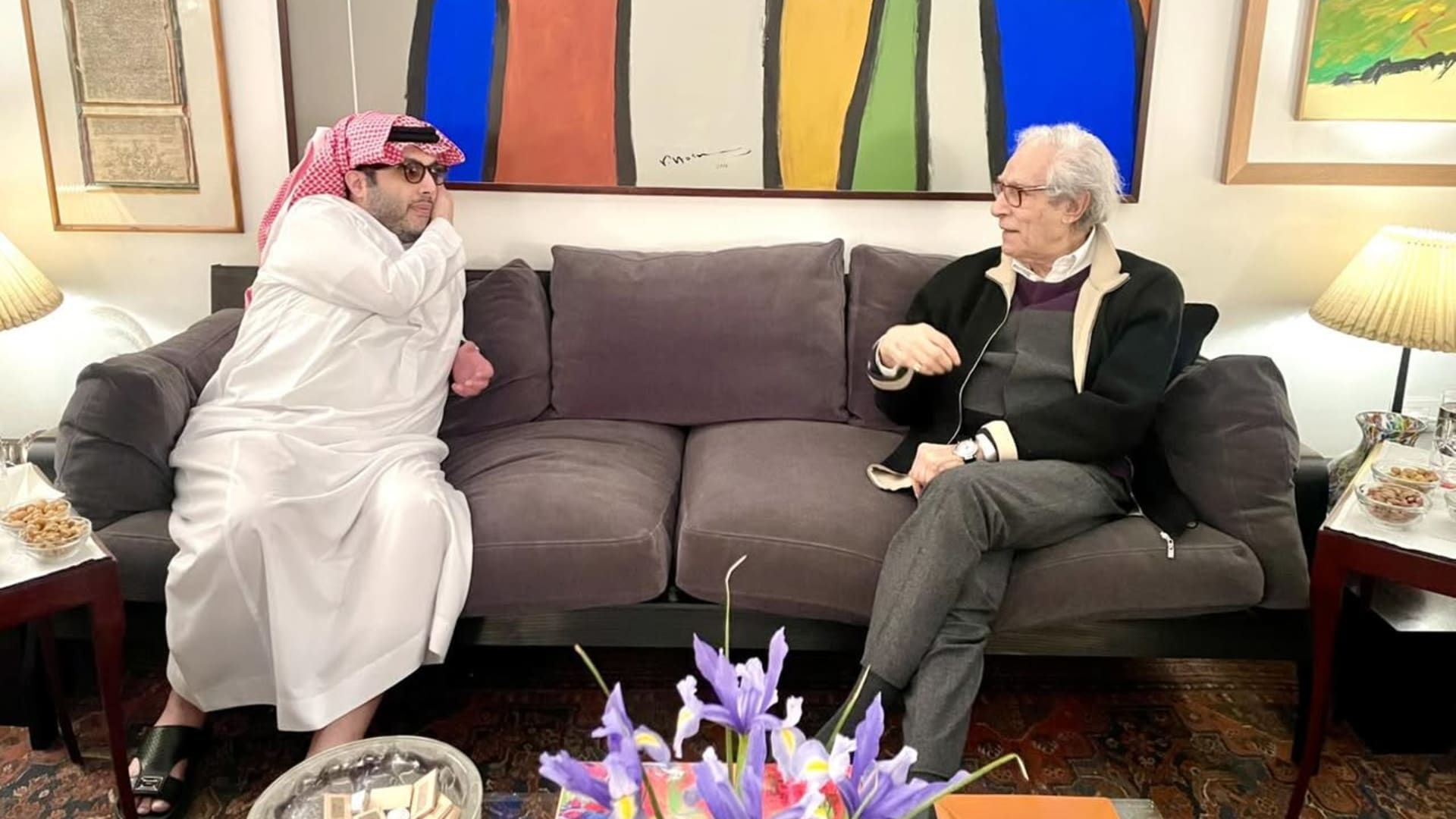 وشارك فاروق حسني عبر صفحته الرسمية على فيسبوك، صورًا جمعته بتركي آل الشيخ، وكتب: "سعدتُ اليوم كثيرًا بزيارة أخي العزيز معالي المستشار تركي آل الشيخ، فهو شخصية عربية مؤثرة أسهمت في إرساء دعائم الثقافة، التي تُعد مقصدًا نبيلًا للإنسانية وركيزةً أساسية في بناء المجتمعات".