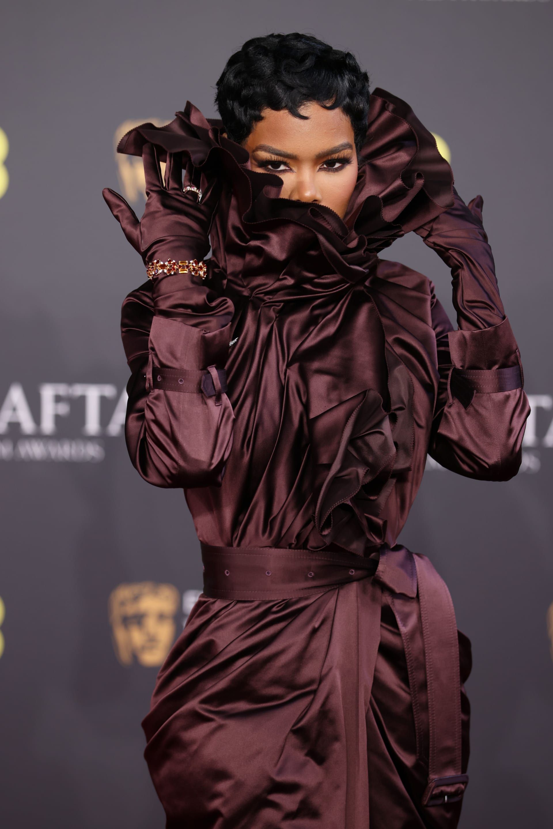 كما طغت درجات الأسود، والرمادي، والأزرق الليلي، والبنفسجي العميق على ألوان التصاميم الجديدة، وهي أجواء لمّحت إليها الفنانة الأمريكية تيانا تايلور في الليلة السابقة، عندما ارتدت فستاناً طويلاً من "بربري" بياقة كشكش درامية خلال حضورها حفل توزيع جوائز البافتا.