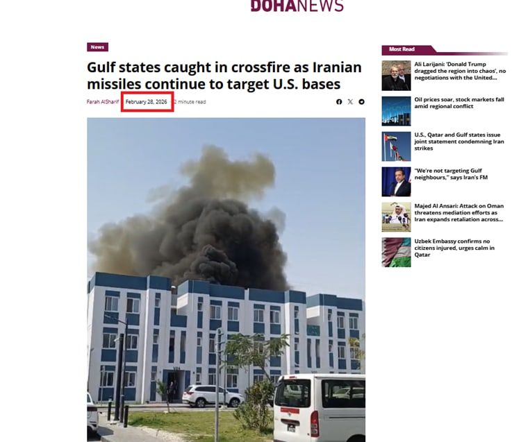 وتتوافر نسخة من الفيديو عبر موقع يوتيوب في نفس النطاق الزمني. في وقت نشر موقع Doha News لقطات مشابهة لما أظهره الفيديو، وأشار إلى أن المشاهد ترتبط بتصاعد الدخان فوق مبنى في منطقة سكنية على مشارف العاصمة القطرية الدوحة.