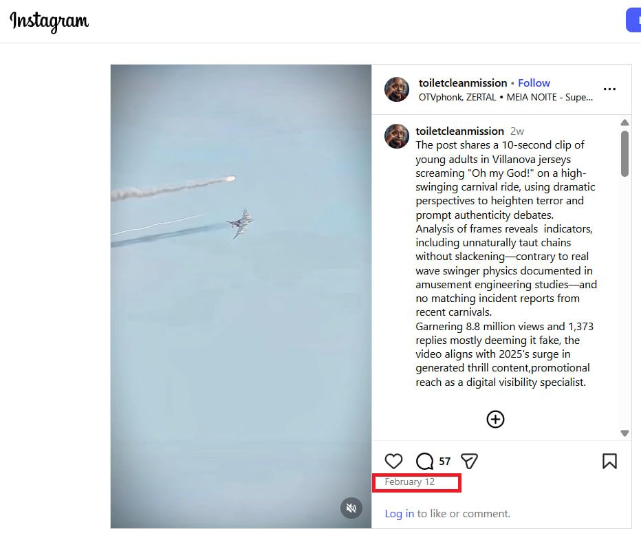 حصد الفيديو آلاف المشاهدات في مواقع التواصل الاجتماعي، مصحوبًا بوصف مُضلل يقول: "تدمير الطائرة الإسرائيلية في الأجواء الإيرانية – طهران".