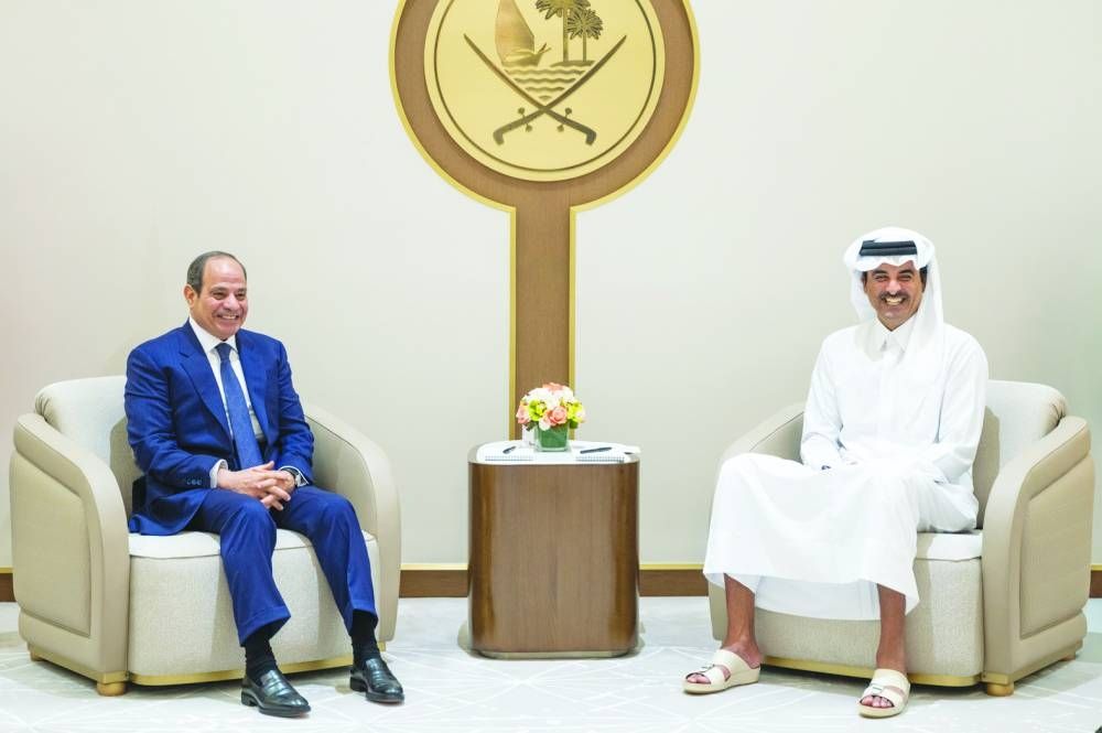 وكان قد تقدم حضرة صاحب السمو الشيخ تميم بن حمد آل ثاني أمير البلاد المفدى، مستقبلي أخيه فخامة الرئيس عبدالفتاح السيسي رئيس جمهورية مصر العربية الشقيقة، لدى وصوله والوفد المرافق أمس إلى مطار حمد الدولي، في زيارة عمل للبلاد.