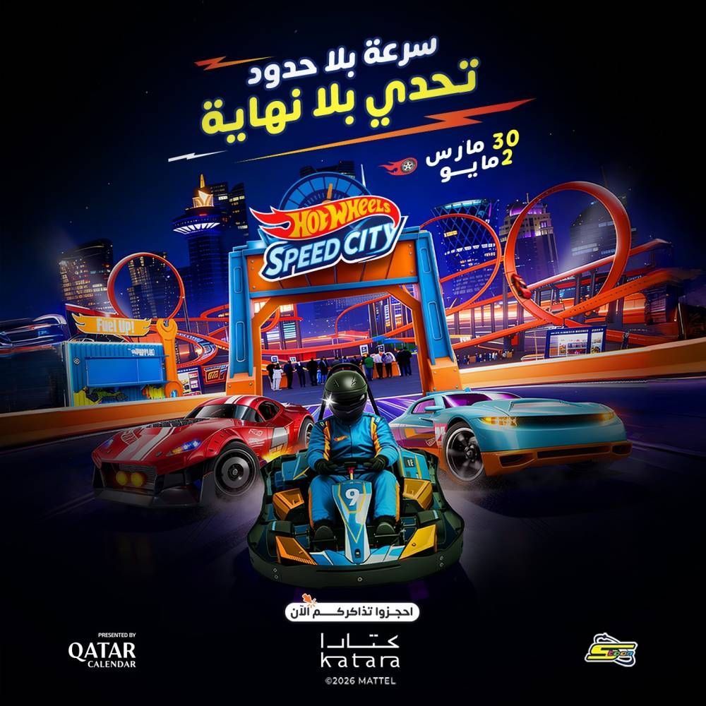الأحد 29 مارس 2026 06:40 مساءً أعلنت رزنامة قطر عن تقديم «مدينة هوت ويلز للسرعة» (Hot Wheels Speed City)، وهي فعالية جديدة مخصصة للعائلات ستقام في المواقف الجنوبية بالحي الثقافي كتارا خلال الفترة من 30 مارس (اليوم) إلى 2 مايو 2026.