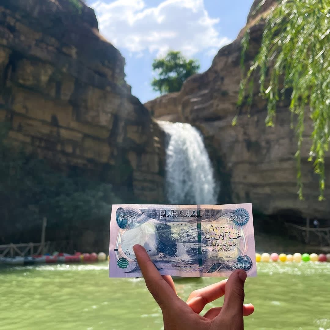 حصن الأخيضر في كربلاء على الوجه الأمامي، وشلال "كلي علي بيك" في أربيل على الوجه الخلفي، لورقة العملة من فئة 5،000 دينار.
