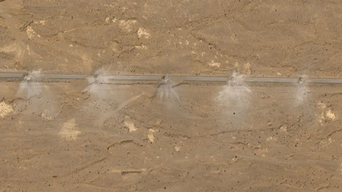 ويبلغ عرض الحفر، التي تظهر واحدة تلو الأخرى على طول الطرق، حوالي 9 أمتار، وهو حجم كاف لتدمير عرض الطرق التي يبدو أنها استُهدفت بدقة متناهية.