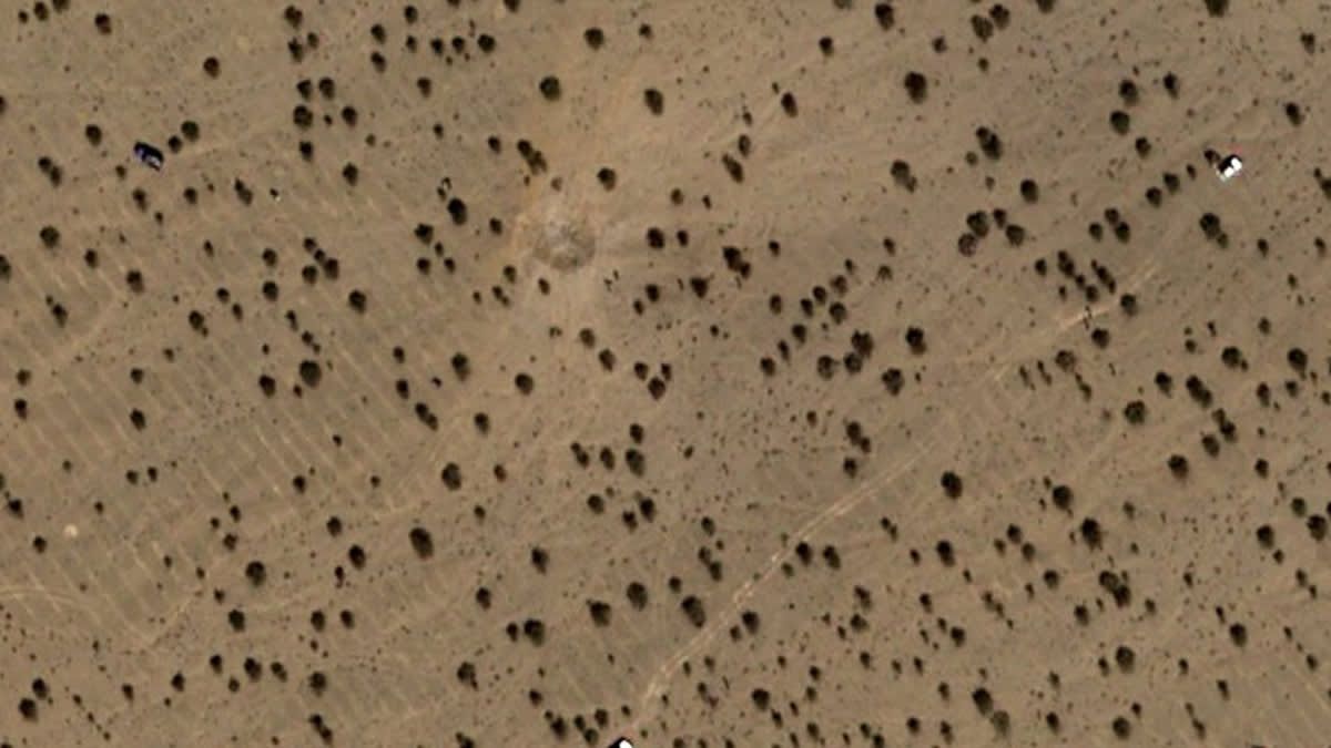 وتقع الحفرة الظاهرة في صورة القمر الصناعي على بُعد حوالي 30 كيلومترًا شمال غرب الموقع الذي دمرت فيه القوات الأمريكية عددا من طائراتها خلال عملية الإنقاذ لإخراج الطيارين الثانيين اللذين أُسقطت طائرتهما يوم الأحد.