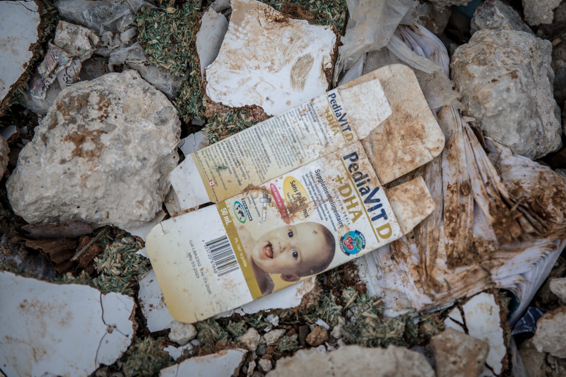 عكست الصور تفاصيل صغيرة تحمل بصمات الحياة اليومية مثل أحذية عالية الكعب، وألعاب أطفال، وأوراق لعب، وكتب، ودفاتر، وأقلام، وأدوات مدرسيّة ، وحفاضات، وأدوية أطفال، وغيرها.
