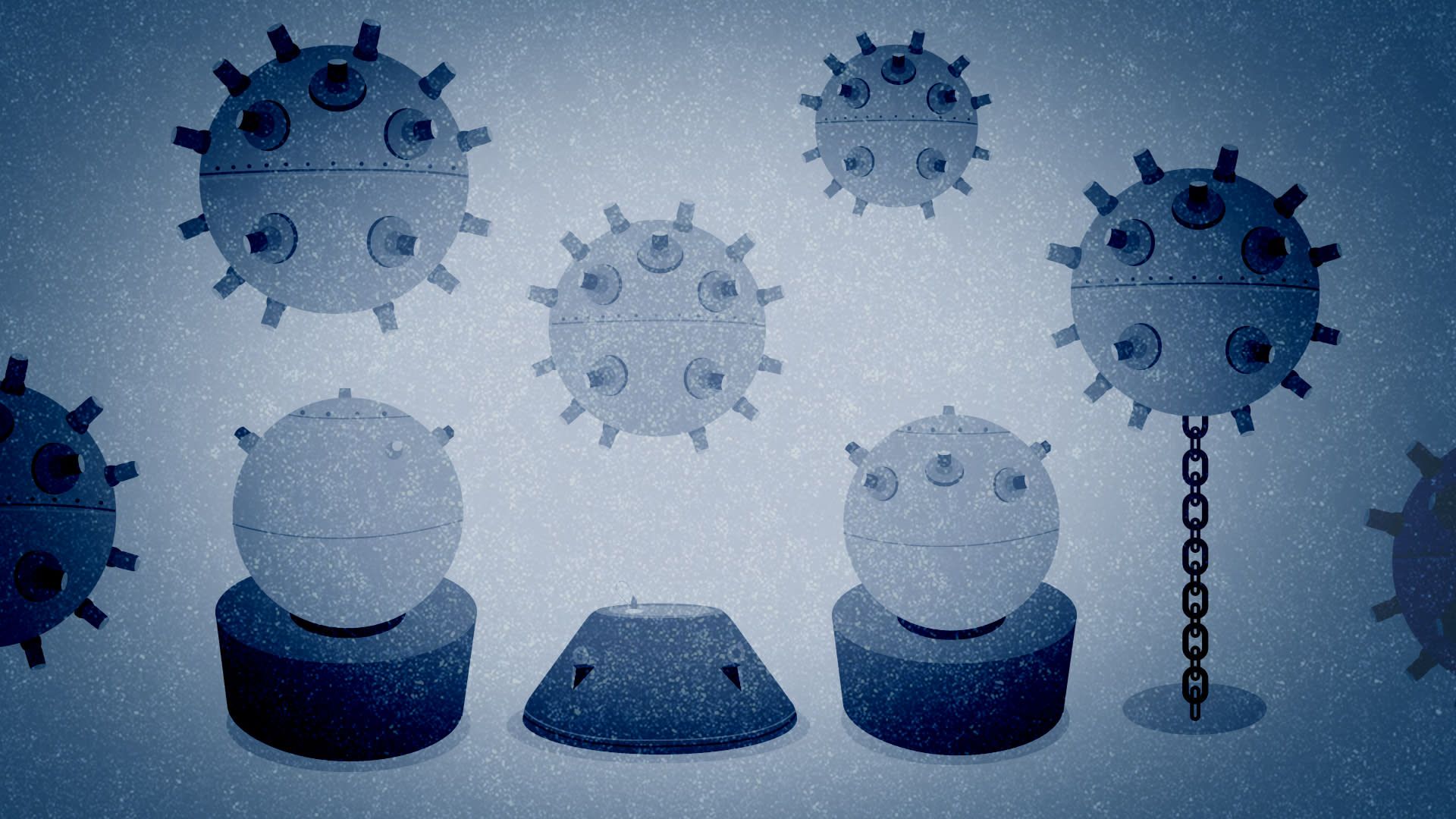 • الألغام التلامسية الشائكة، كتلك التي تظهر في أفلام الحرب العالمية الثانية.