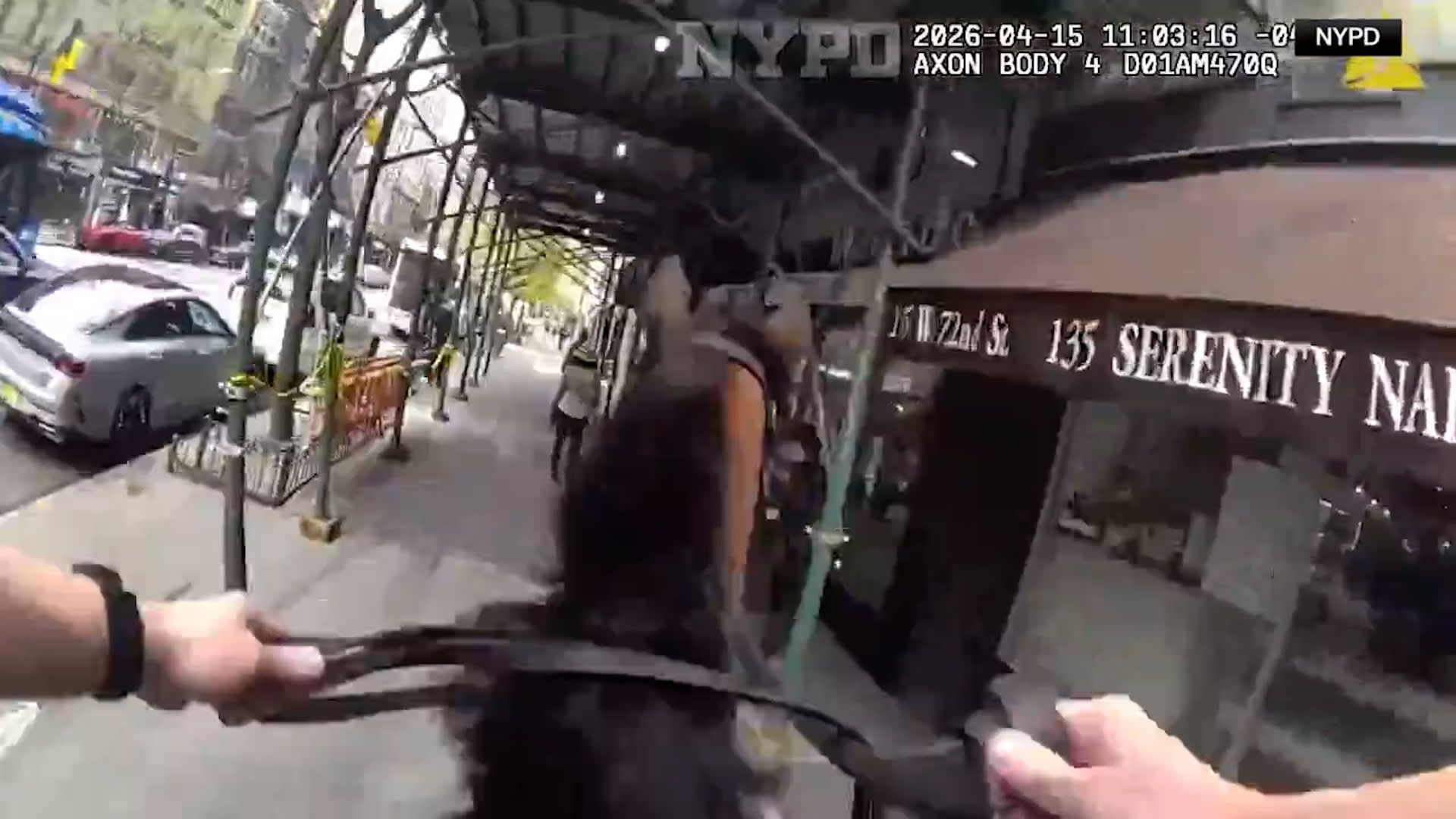 شرطي على ظهر حصان يباغت لصًا مشتبهًا به ويلاحقه بين أرصفة نيويورك